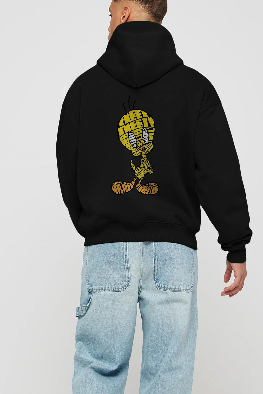 Tweety Arka Baskılı Hoodie Oversize Kapüşonlu Sweatshirt Erkek Kadın Unisex