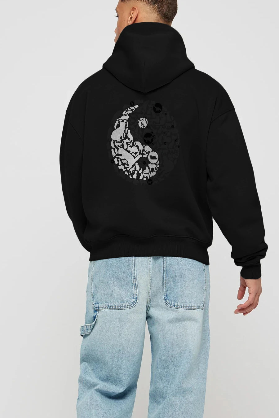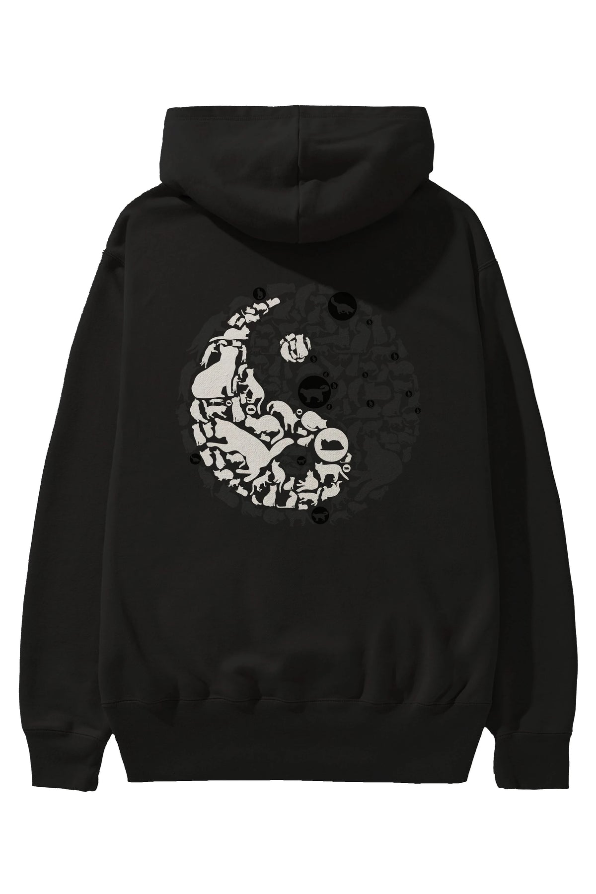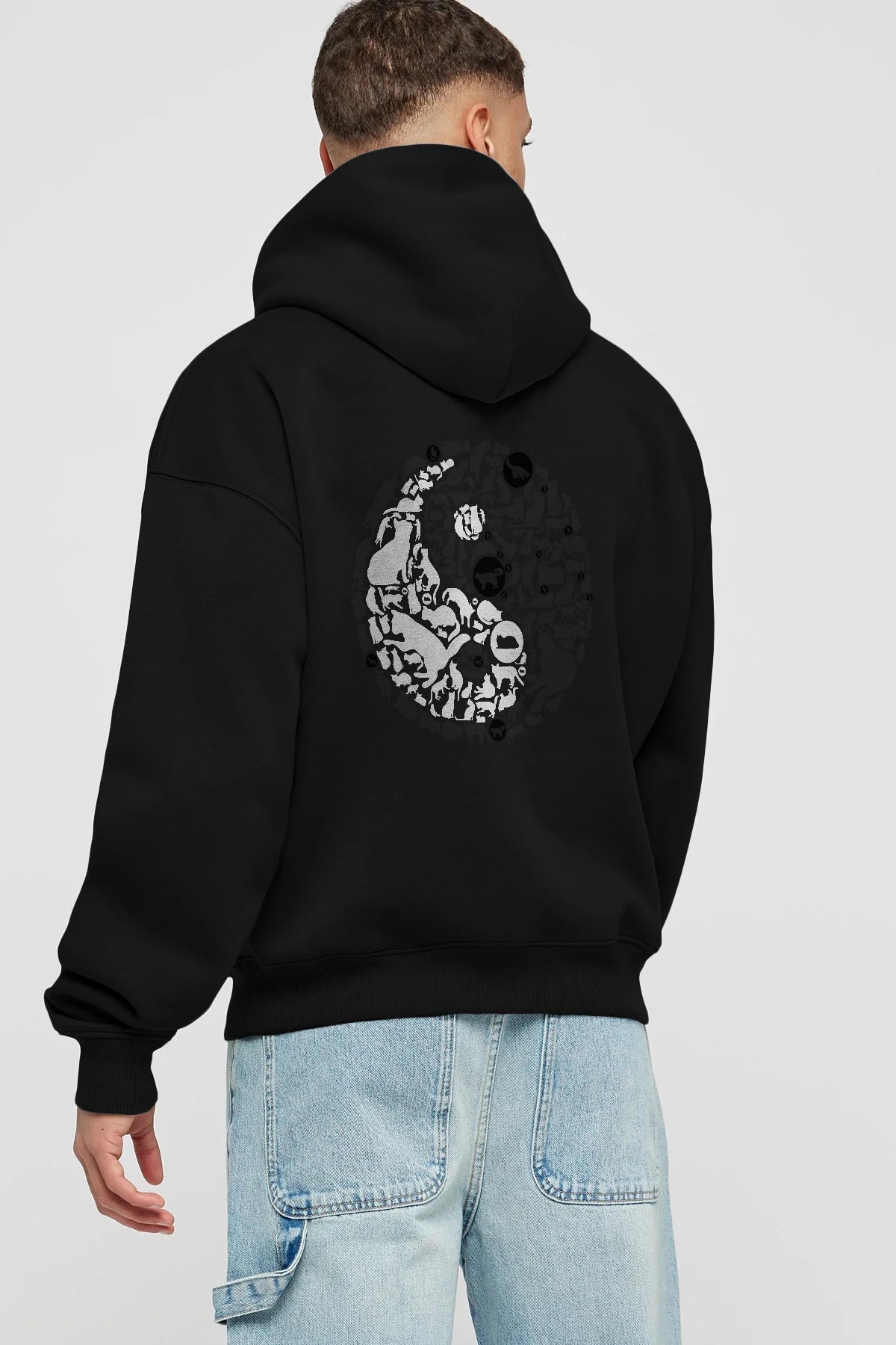 YinYang Cats Arka Baskılı Hoodie Oversize Kapüşonlu Sweatshirt Erkek Kadın Unisex