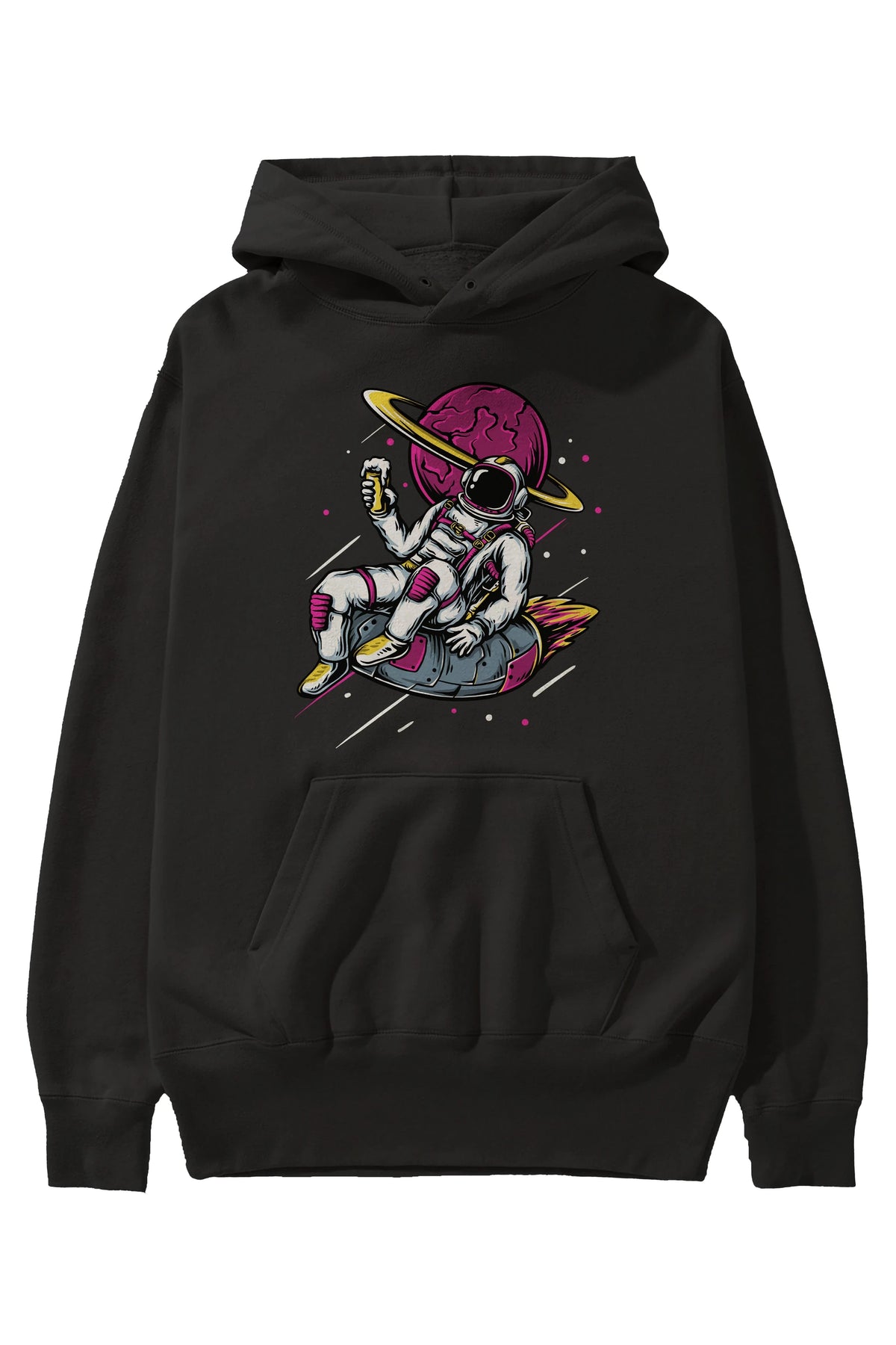 Astronaut Beer Ön Baskılı Oversize Hoodie Kapüşonlu Sweatshirt Erkek Kadın Unisex