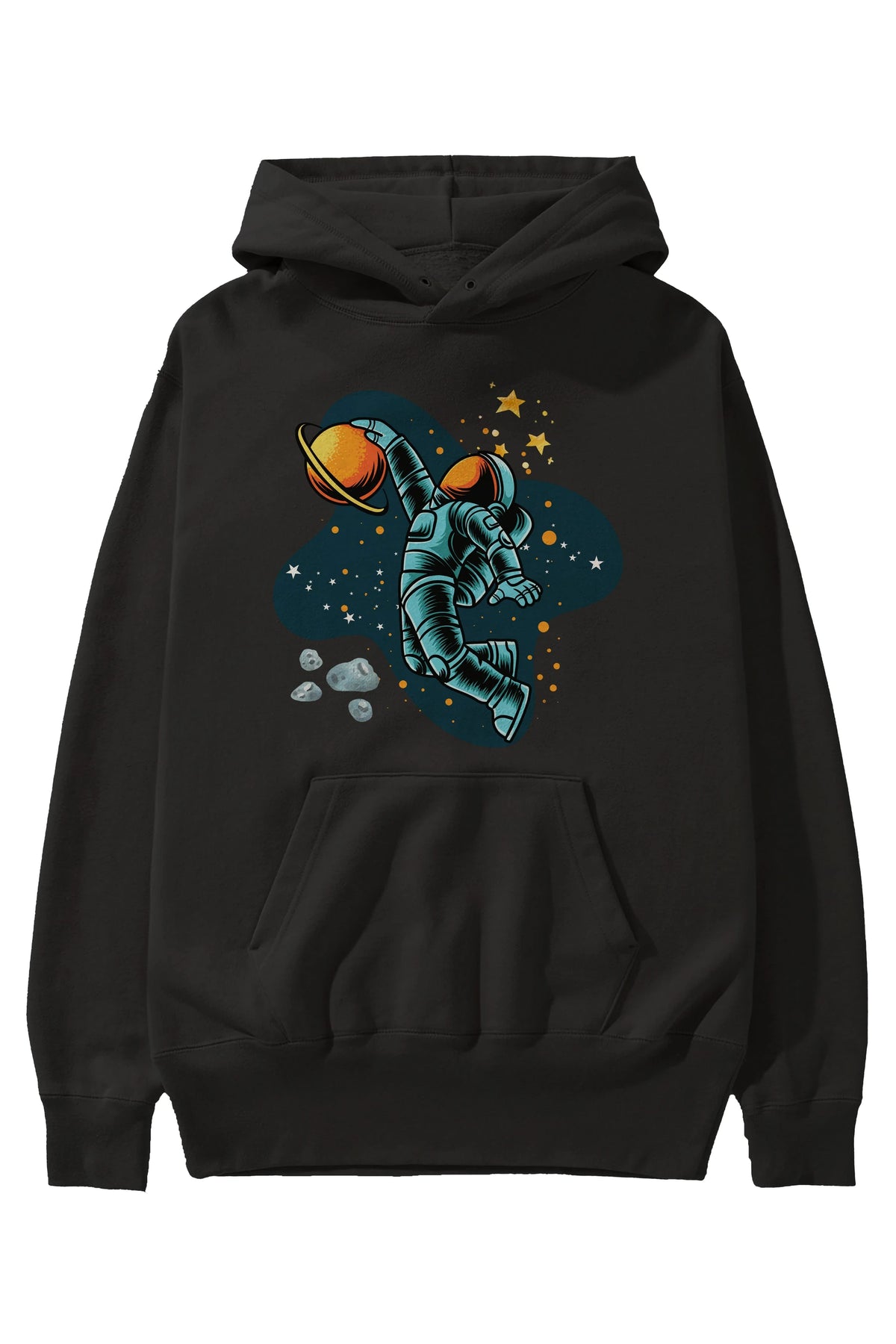 Astronot Basketbol Ön Baskılı Oversize Hoodie Kapüşonlu Sweatshirt Erkek Kadın Unisex