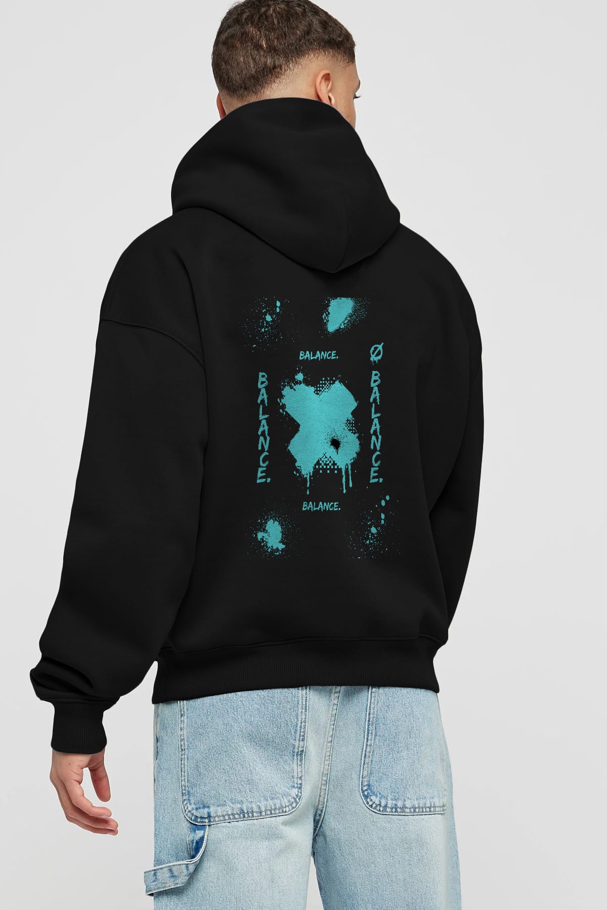 Balance Balance Yazılı Arka Baskılı Oversize Hoodie Kapüşonlu Sweatshirt Erkek Kadın Unisex