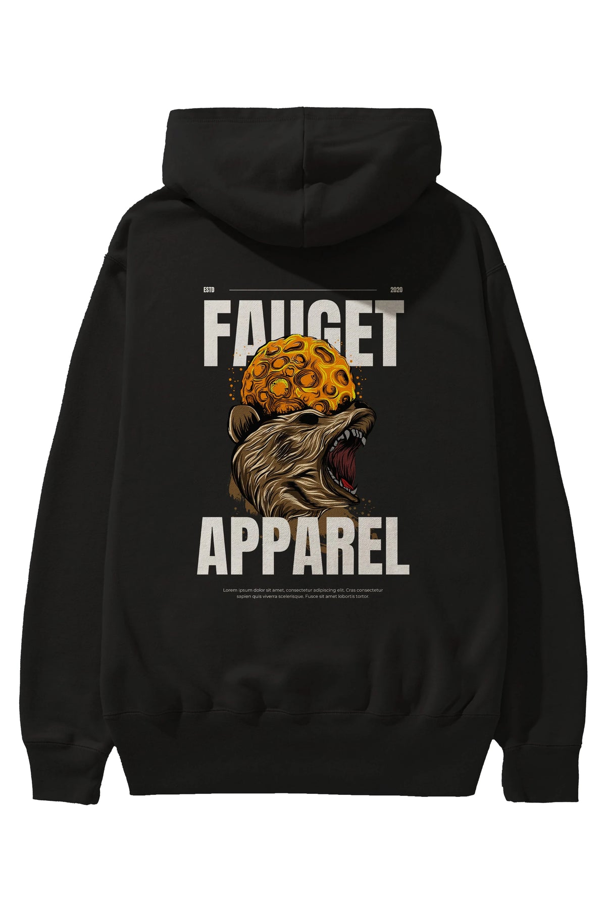 Bear Angry Fauget Apparel Arka Baskılı Oversize Hoodie Kapüşonlu Sweatshirt Erkek Kadın Unisex