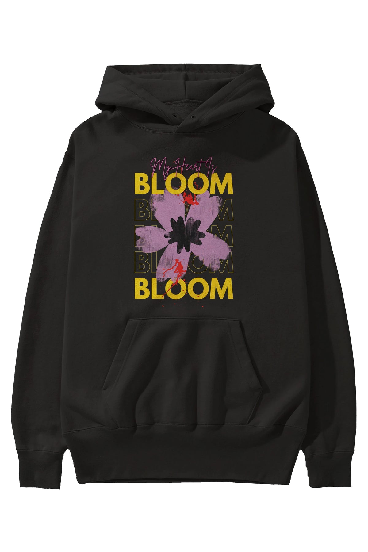 Bloom Yazılı Ön Baskılı Oversize Hoodie Kapüşonlu Sweatshirt Erkek Kadın Unisex