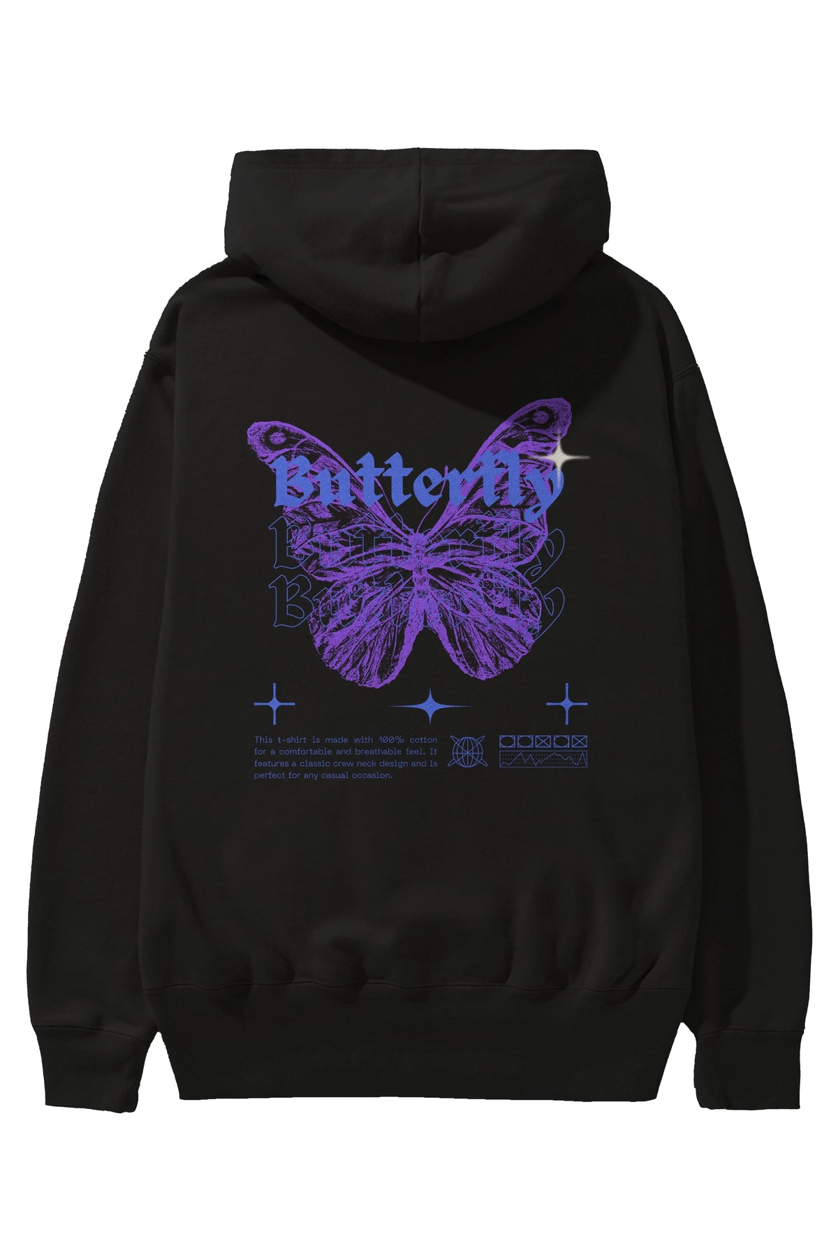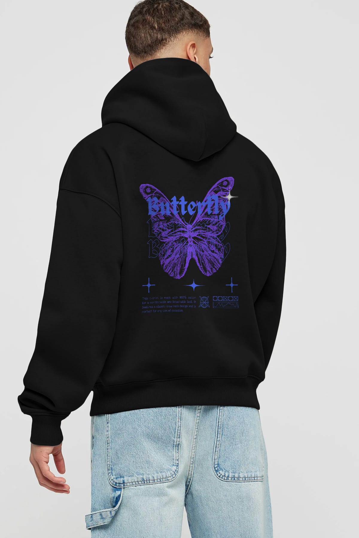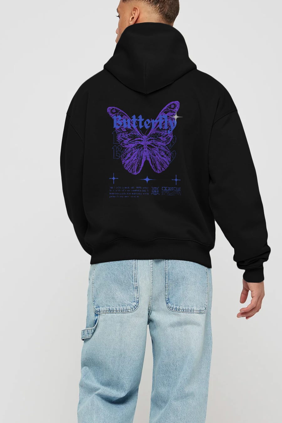 Butterfly Streetwear Arka Baskılı Oversize Hoodie Kapüşonlu Sweatshirt Erkek Kadın Unisex
