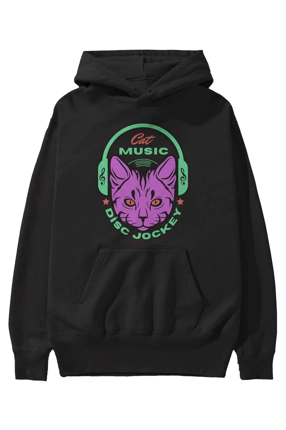 Cat Music Ön Baskılı Oversize Hoodie Kapüşonlu Sweatshirt Erkek Kadın Unisex