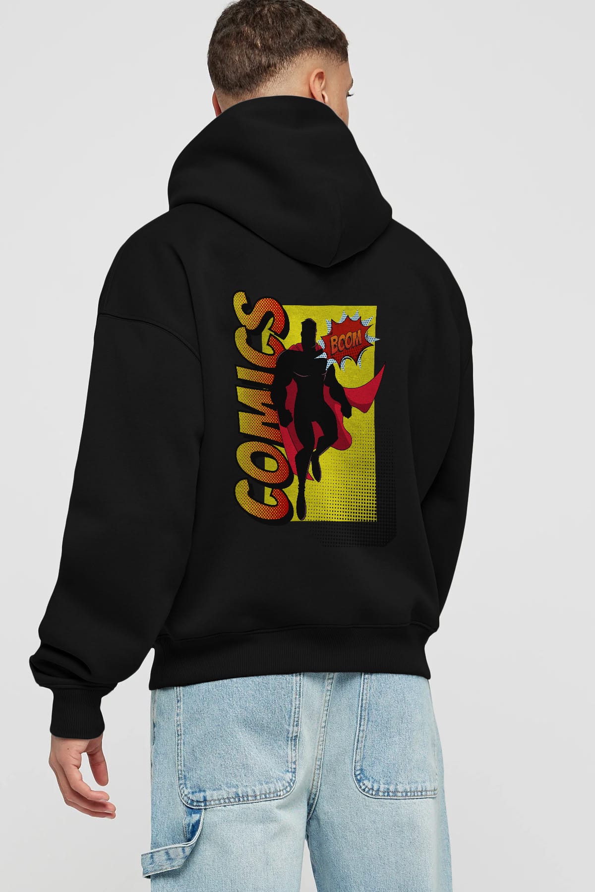 Comics Boom Arka Baskılı Oversize Hoodie Kapüşonlu Sweatshirt Erkek Kadın Unisex