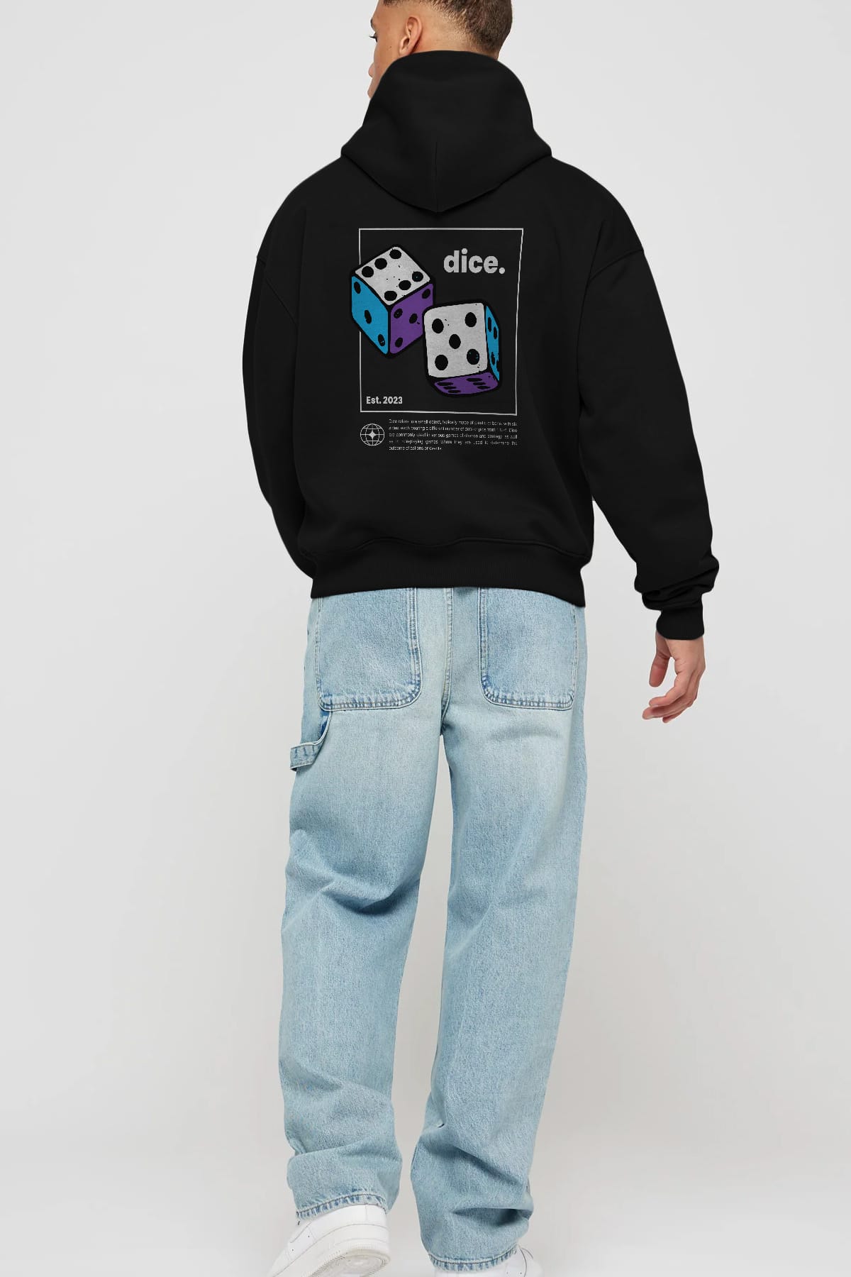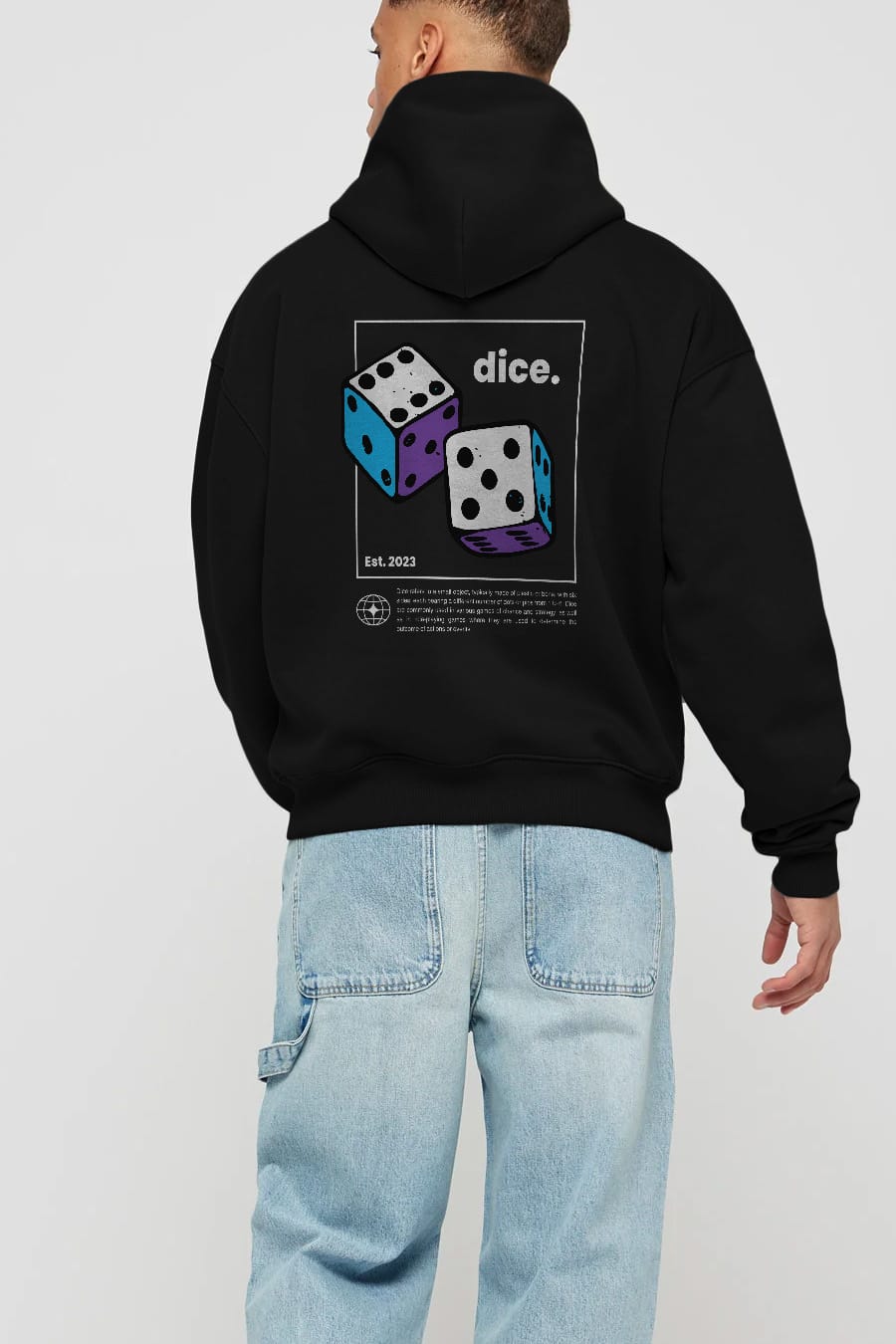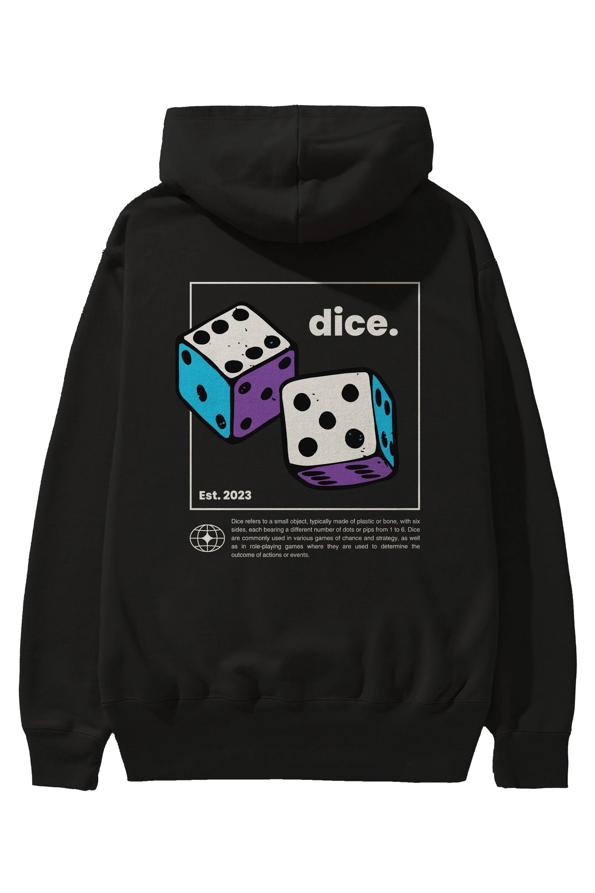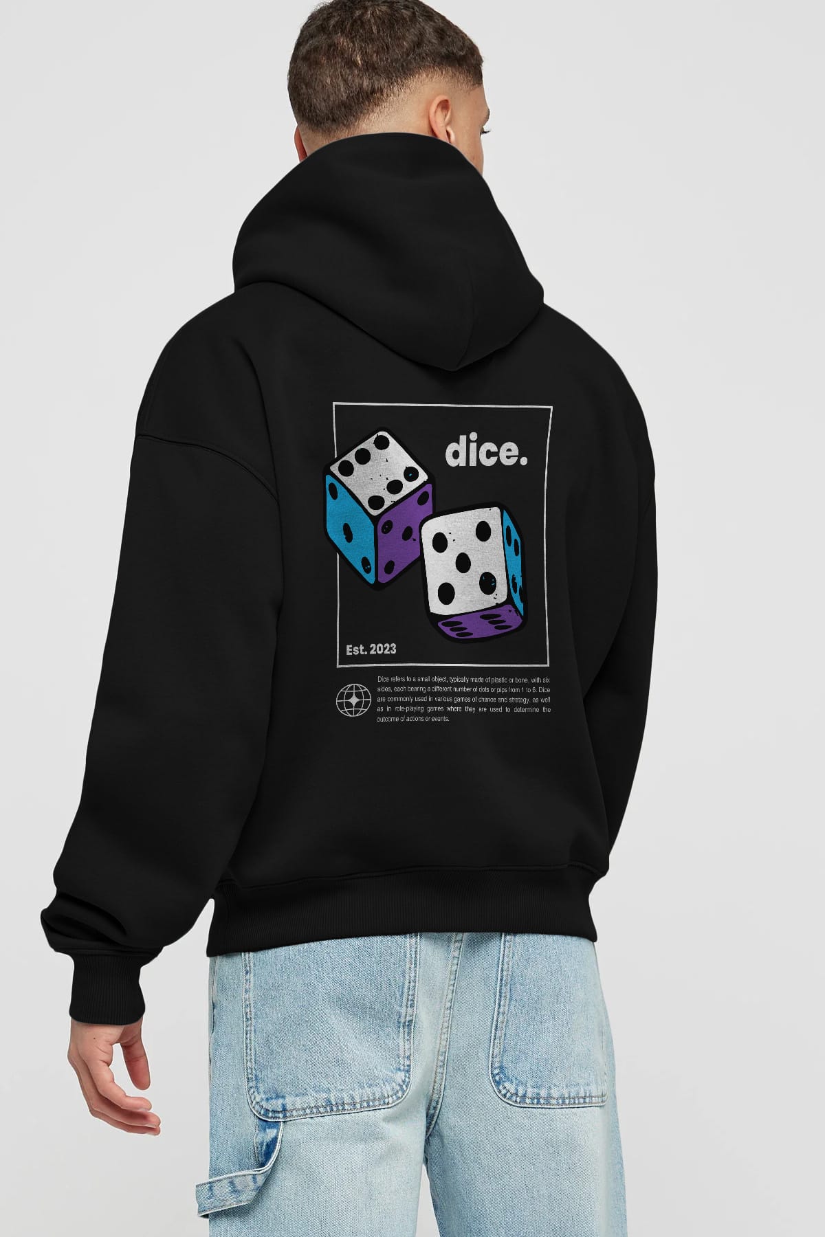 Dice Yazılı Arka Baskılı Oversize Hoodie Kapüşonlu Sweatshirt Erkek Kadın Unisex