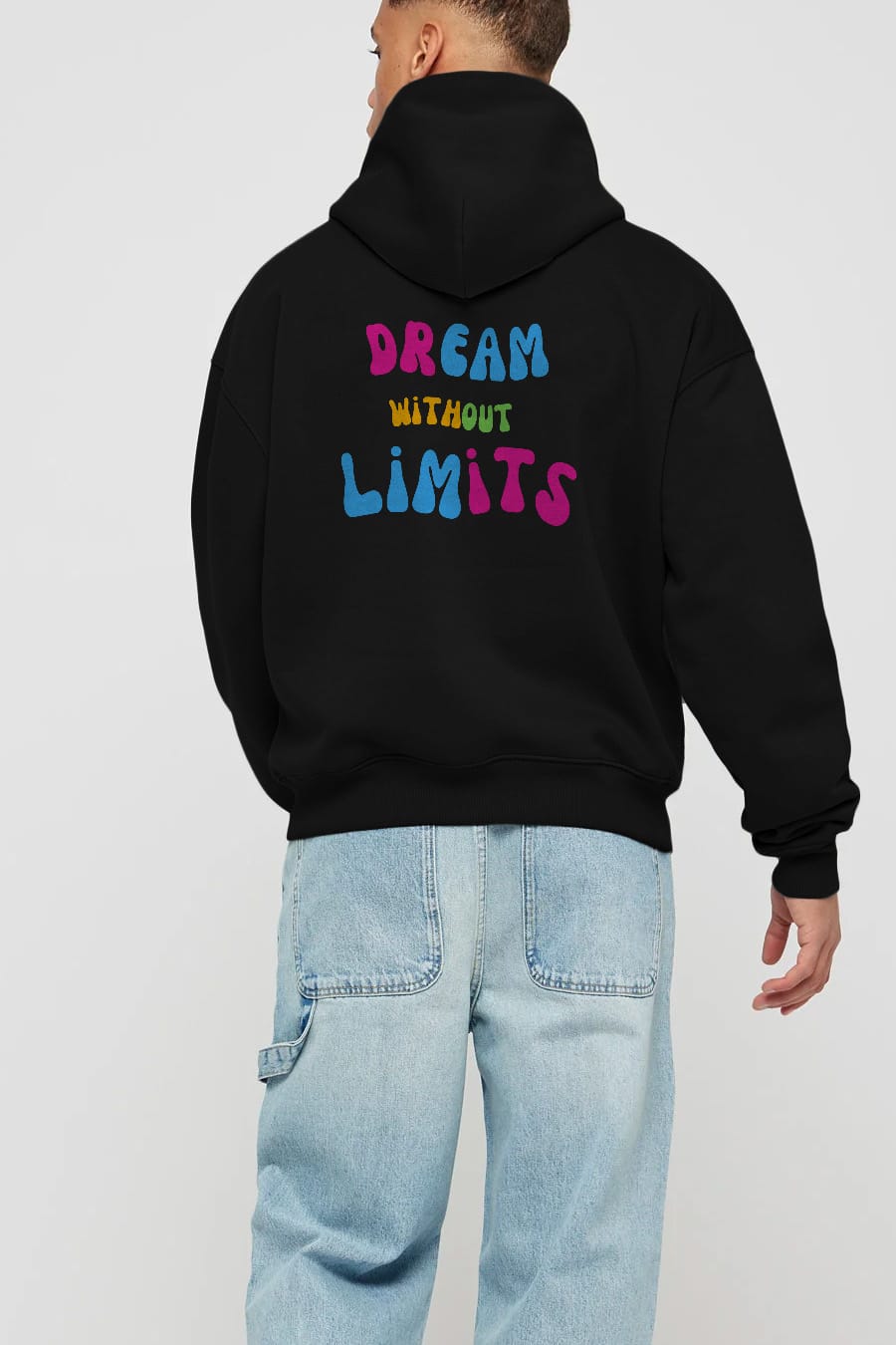 Dream Without Limits Yazılı Arka Baskılı Oversize Hoodie Kapüşonlu Sweatshirt Erkek Kadın Unisex