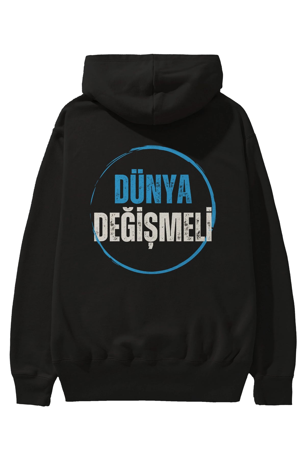 Dünya Değişmeli Yazılı Arka Baskılı Oversize Hoodie Kapüşonlu Sweatshirt Erkek Kadın Unisex