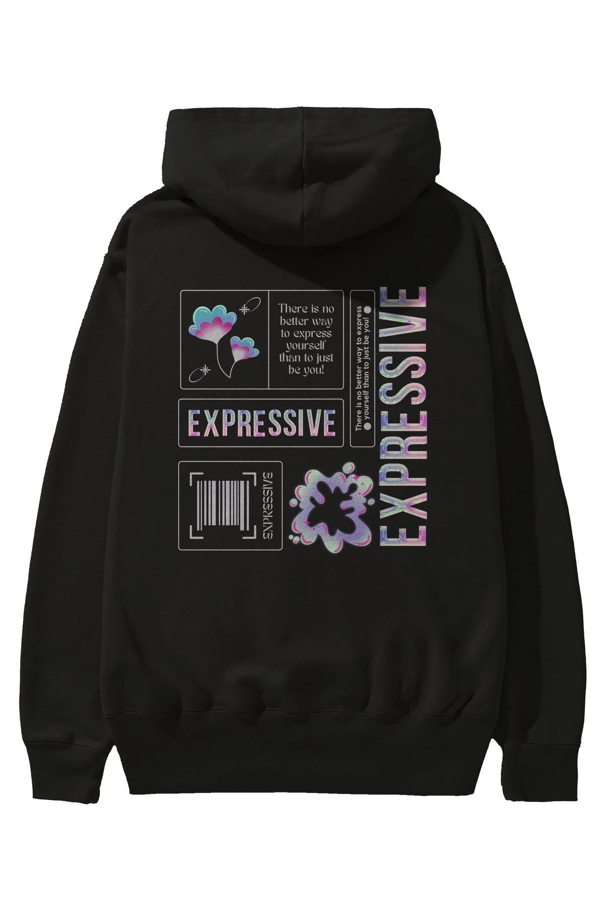 Expressive Streetwear Arka Baskılı Oversize Hoodie Kapüşonlu Sweatshirt Erkek Kadın Unisex