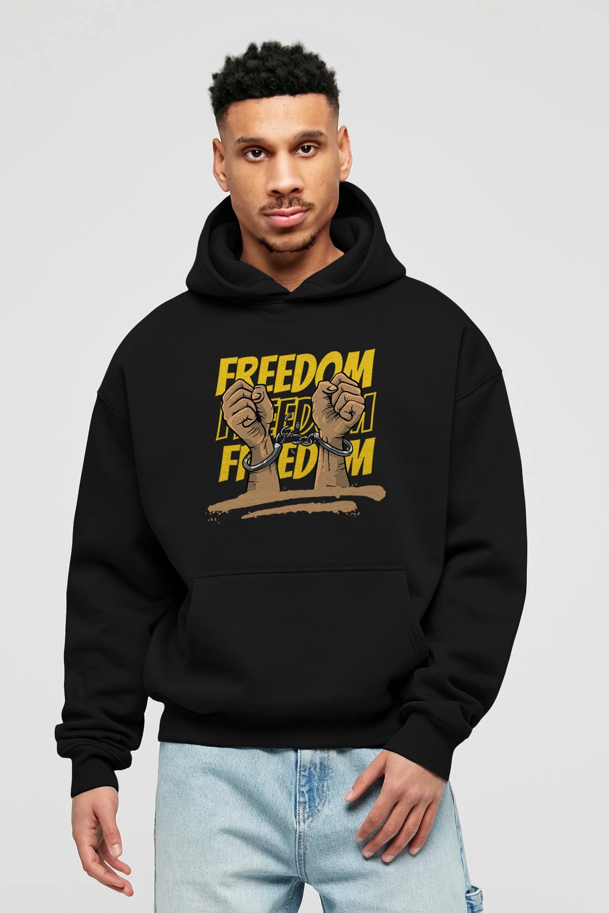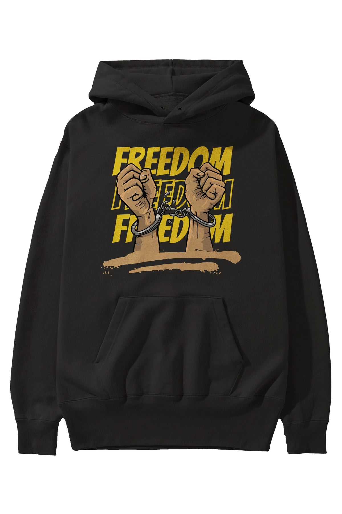 Freedom Yazılı Ön Baskılı Oversize Hoodie Kapüşonlu Sweatshirt Erkek Kadın Unisex