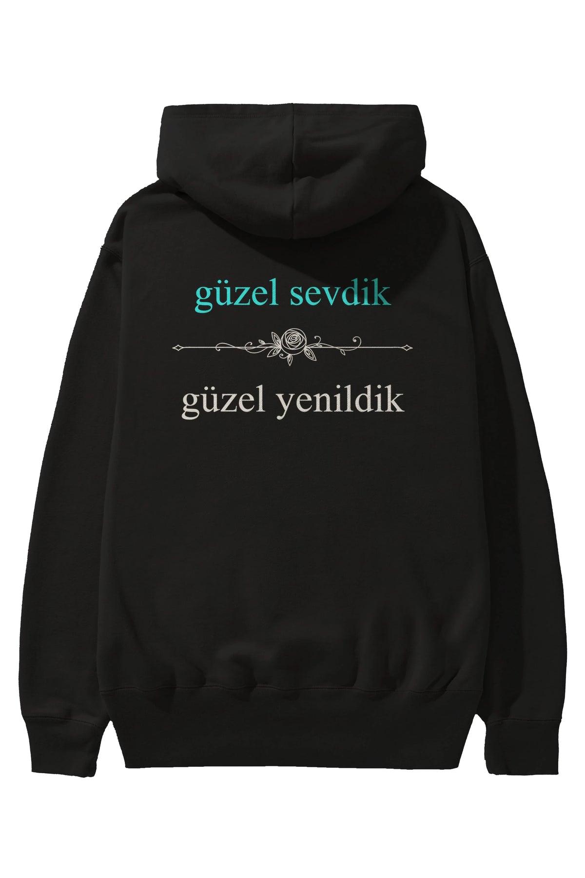 Güzel Sevdik , Güzel Yenildik Yazılı Arka Baskılı Oversize Hoodie Kapüşonlu Sweatshirt Erkek Kadın Unisex