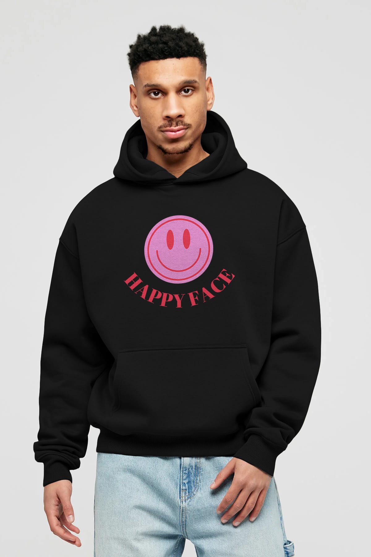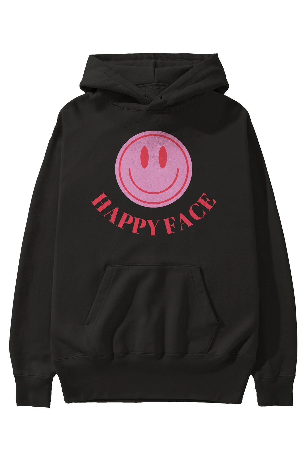 Happy Face Yazılı Ön Baskılı Oversize Hoodie Kapüşonlu Sweatshirt Erkek Kadın Unisex