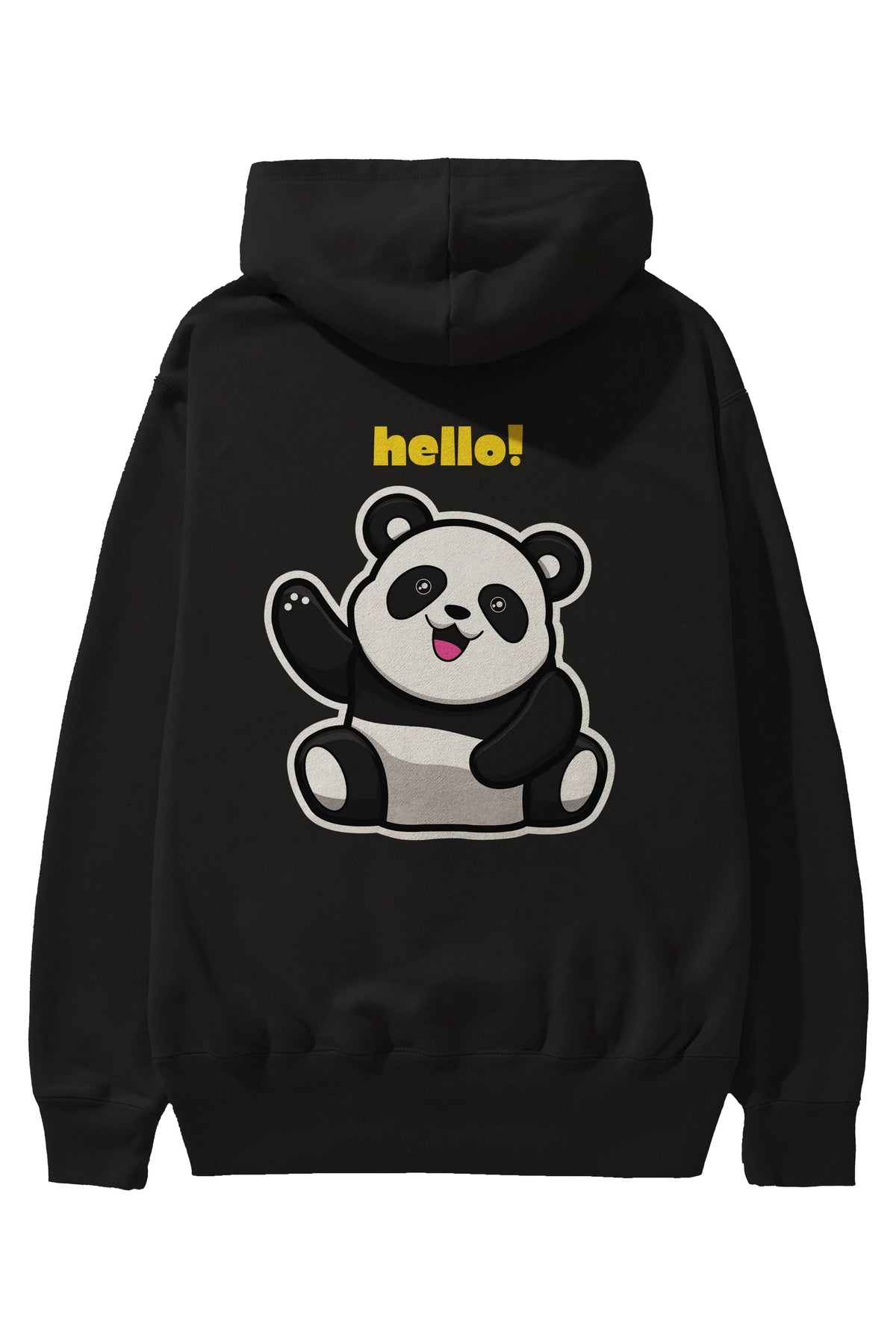 Hello Panda Arka Baskılı Oversize Hoodie Kapüşonlu Sweatshirt Erkek Kadın Unisex