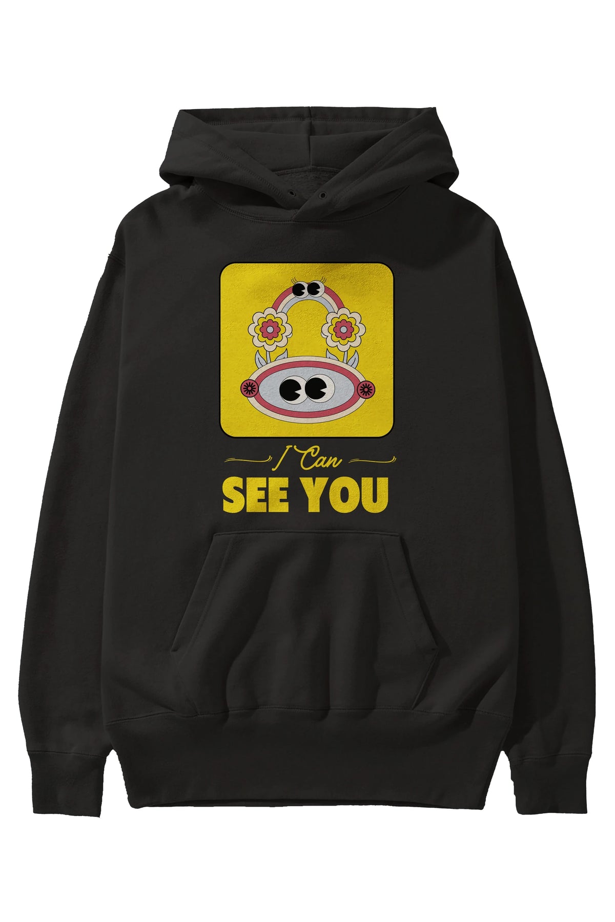 I Can See You Yazılı Ön Baskılı Oversize Hoodie Kapüşonlu Sweatshirt Erkek Kadın Unisex