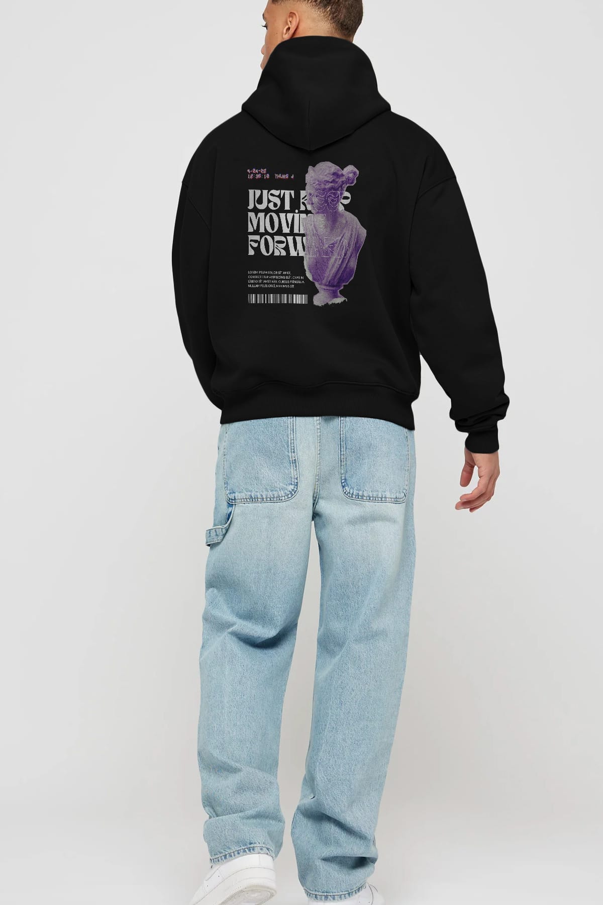 Just Keep Moving Forward Yazılı Arka Baskılı Oversize Hoodie Kapüşonlu Sweatshirt Erkek Kadın Unisex