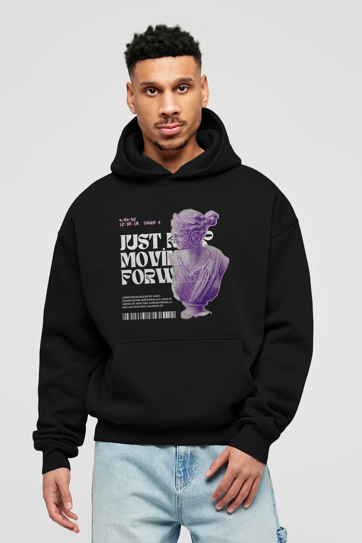Just Keep Moving Forward Yazılı Ön Baskılı Oversize Hoodie Kapüşonlu Sweatshirt Erkek Kadın Unisex