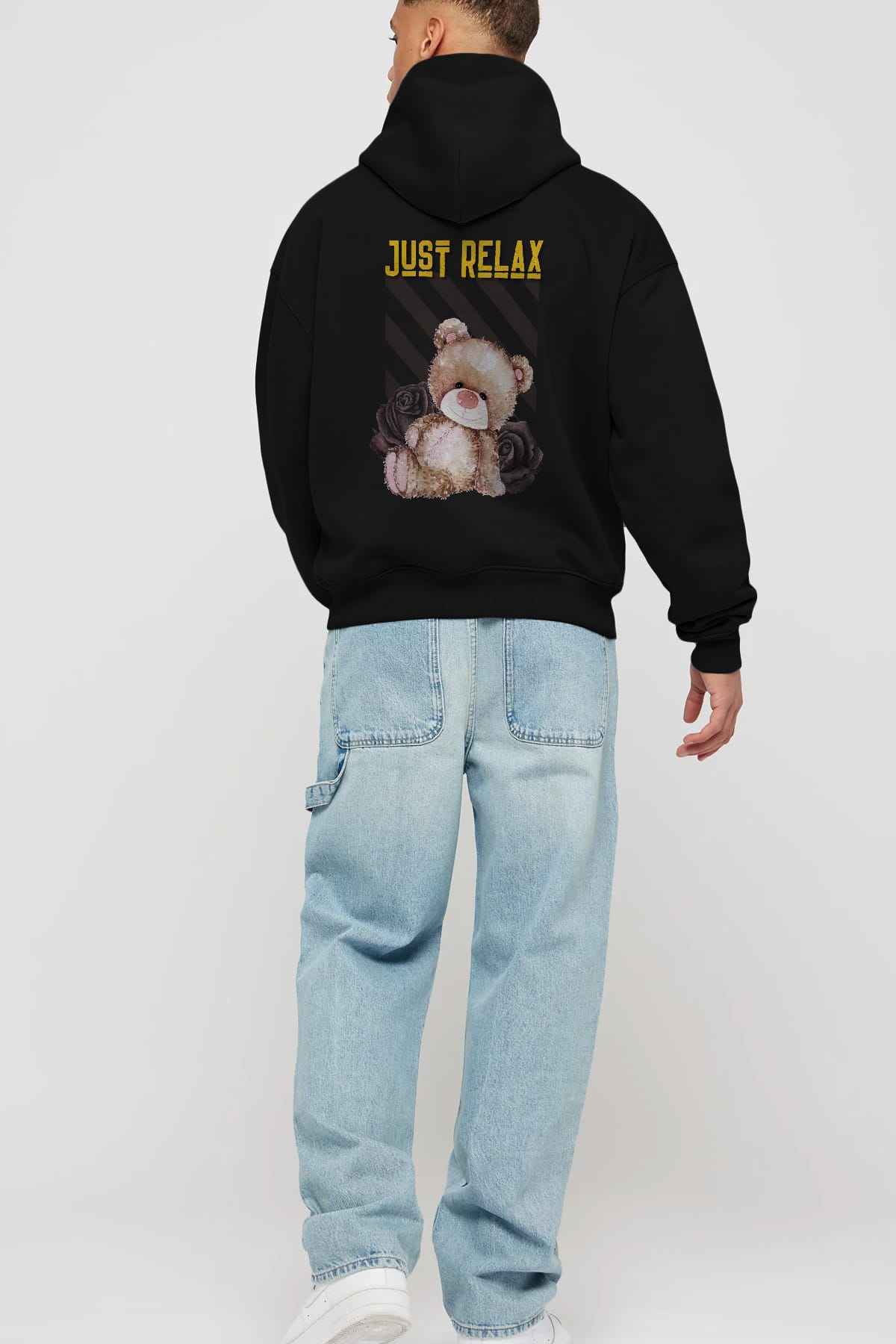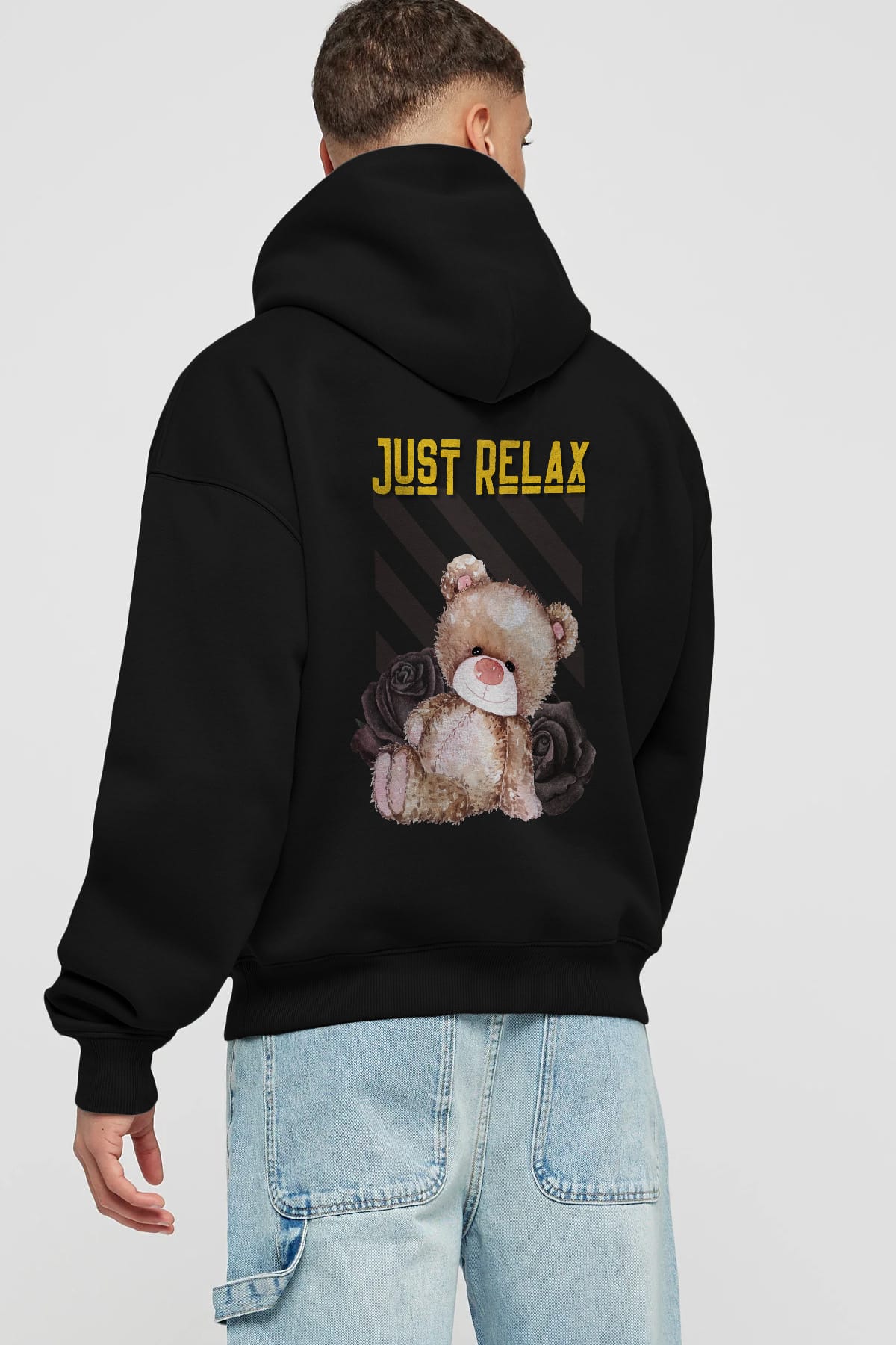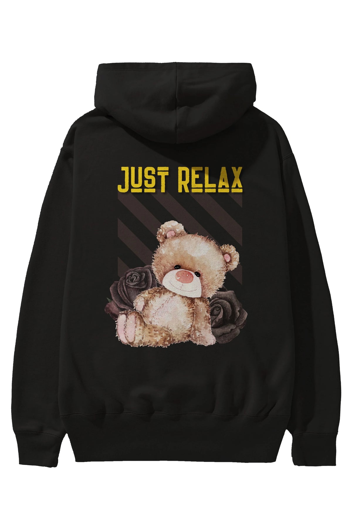 Just Relax Teddy Bear Arka Baskılı Oversize Hoodie Kapüşonlu Sweatshirt Erkek Kadın Unisex