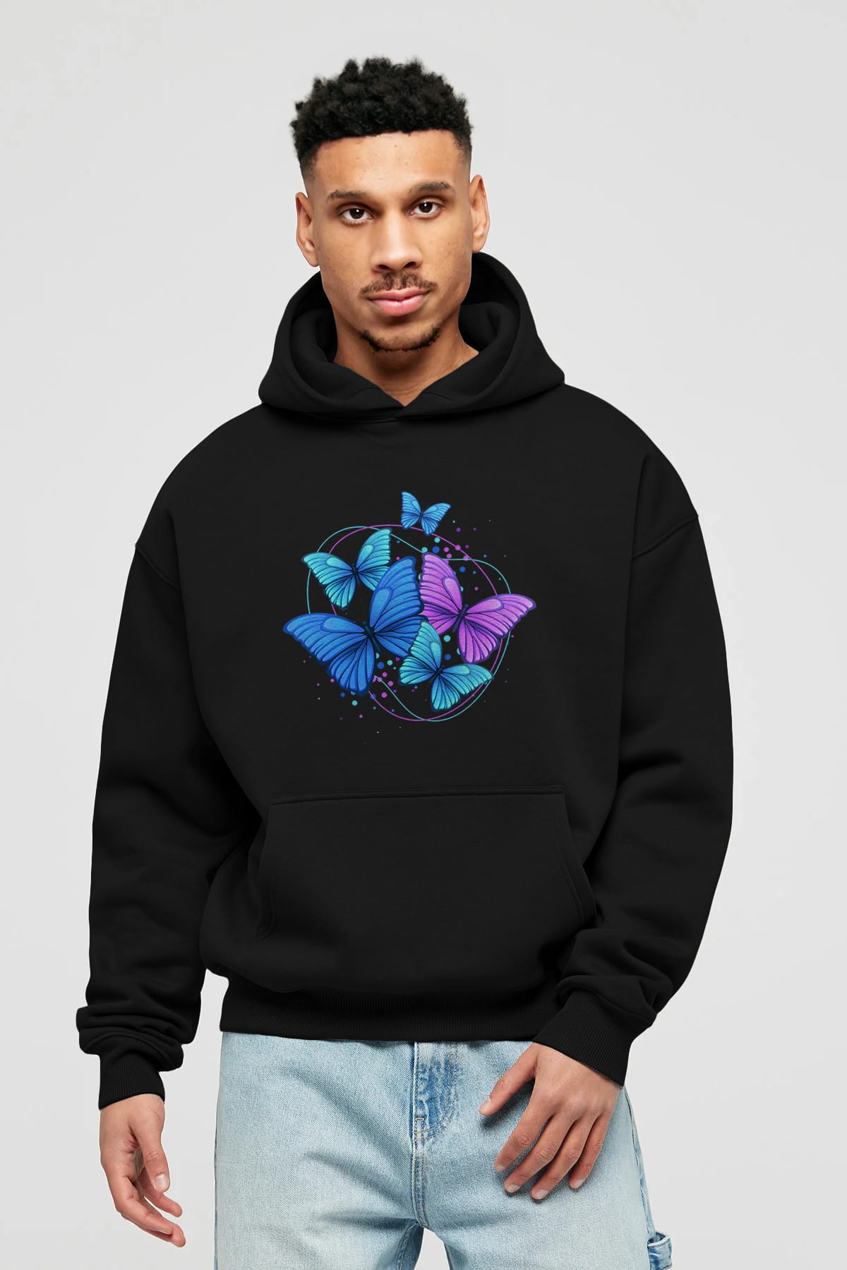 Kelebek Ön Baskılı Oversize Hoodie Kapüşonlu Sweatshirt Erkek Kadın Unisex