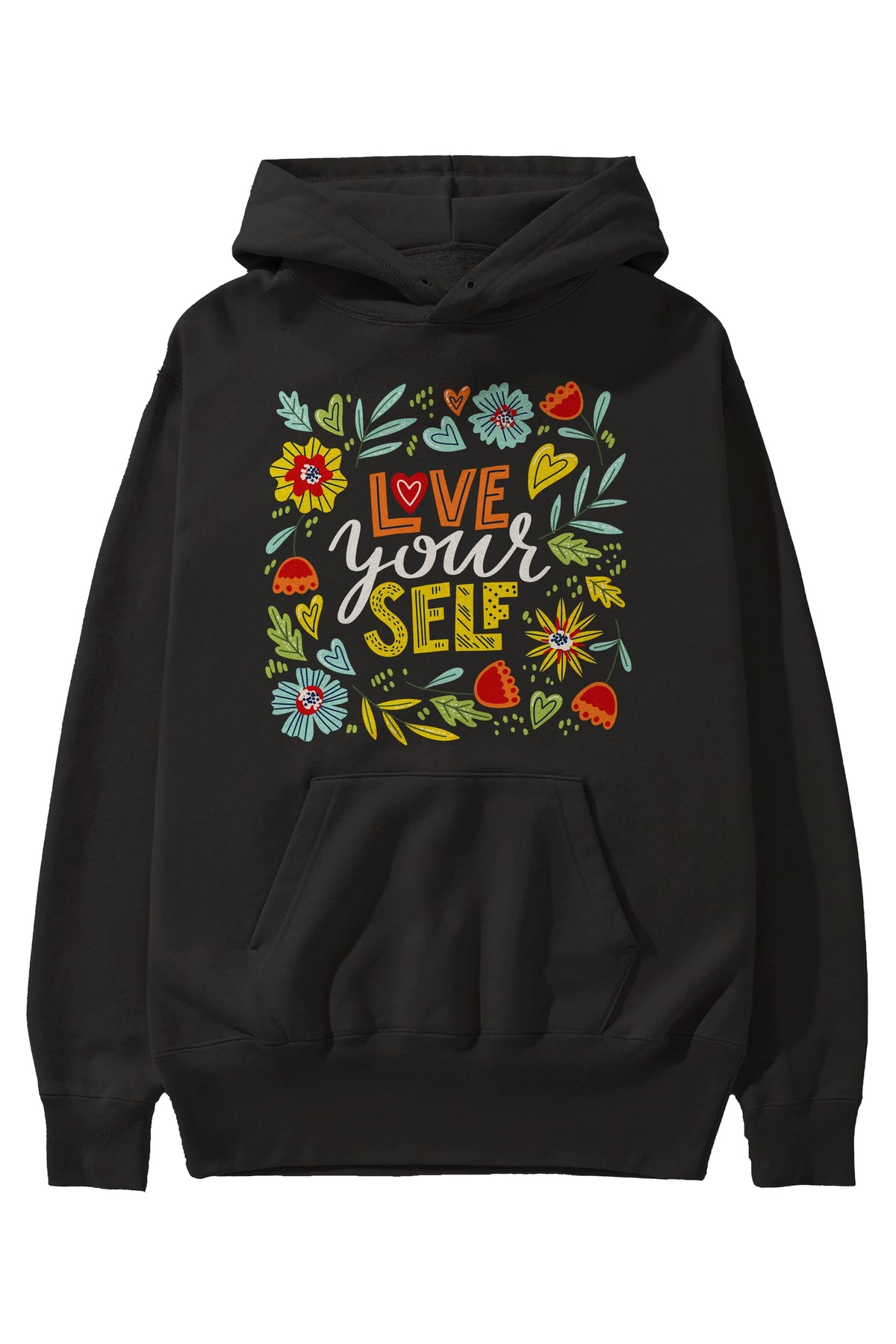 Love Yourself Yazılı Ön Baskılı Oversize Hoodie Kapüşonlu Sweatshirt Erkek Kadın Unisex