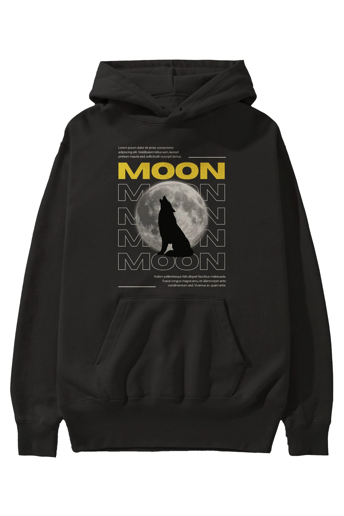 Moon Ön Baskılı Oversize Hoodie Kapüşonlu Sweatshirt Erkek Kadın Unisex
