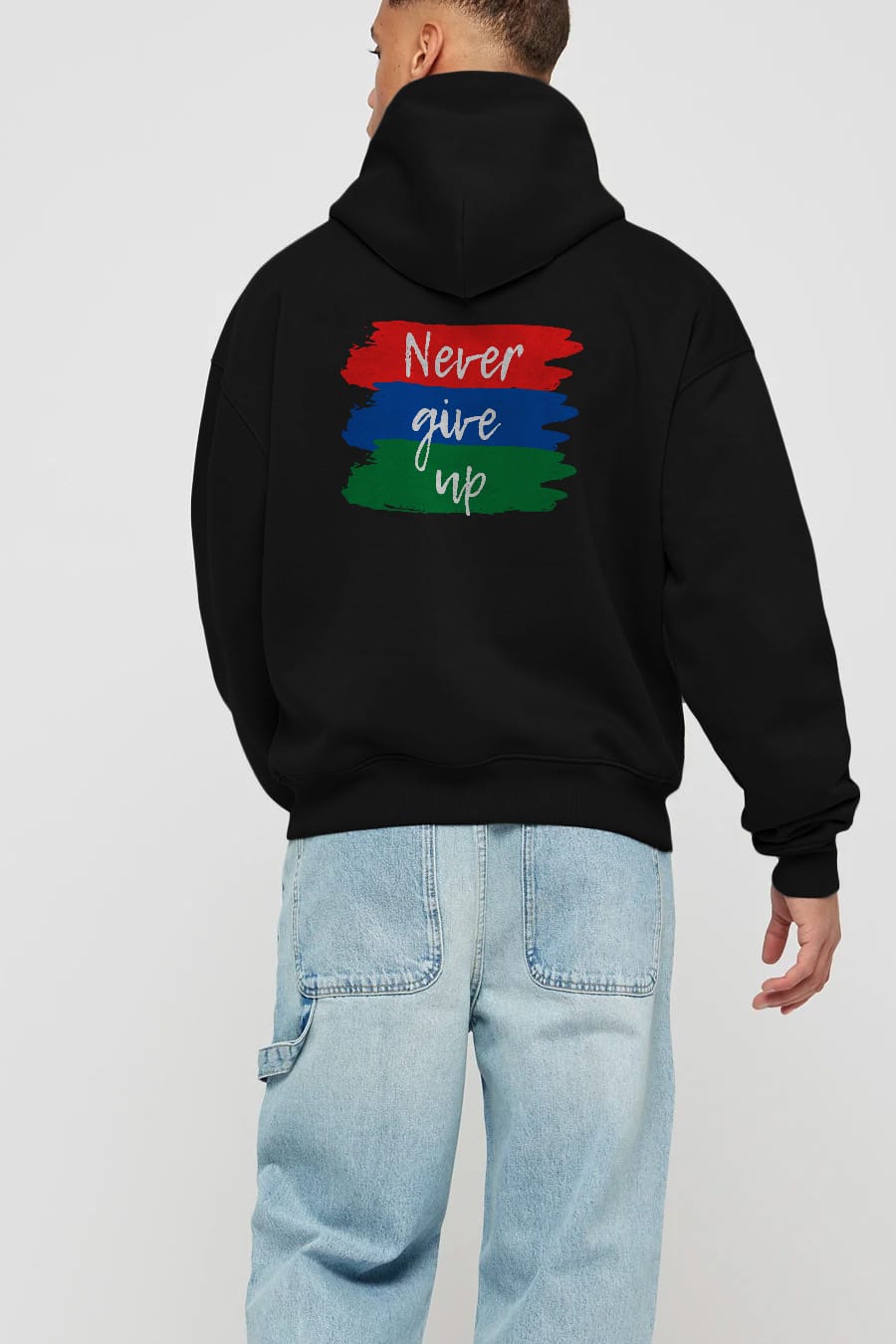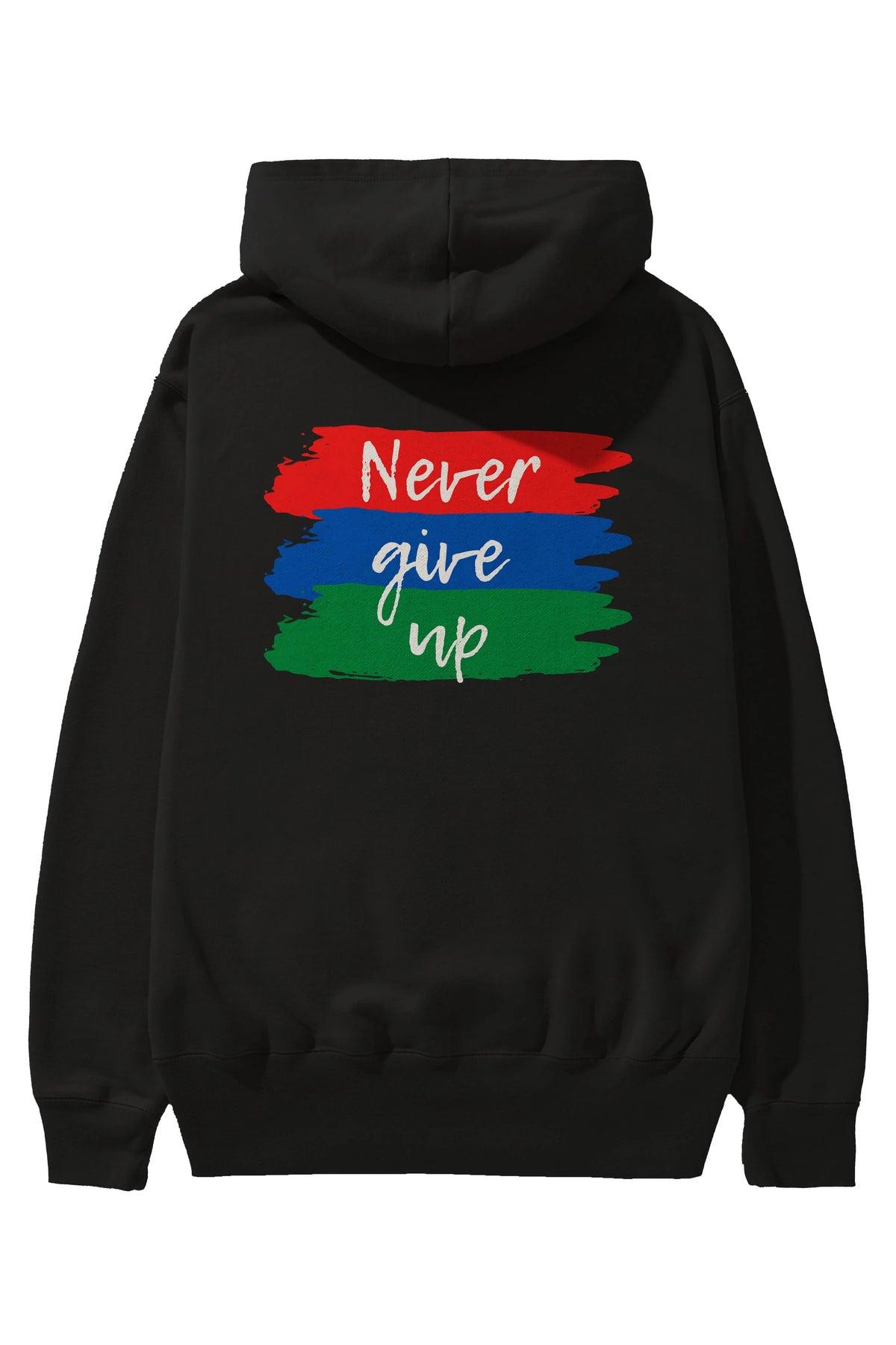 Never Give Up Yazılı Arka Baskılı Oversize Hoodie Kapüşonlu Sweatshirt Erkek Kadın Unisex