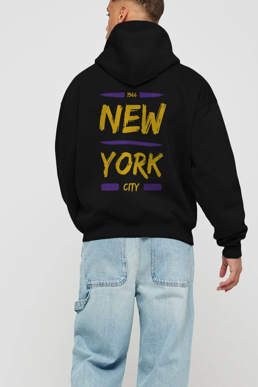 New York City 2 Arka Baskılı Oversize Hoodie Kapüşonlu Sweatshirt Erkek Kadın Unisex