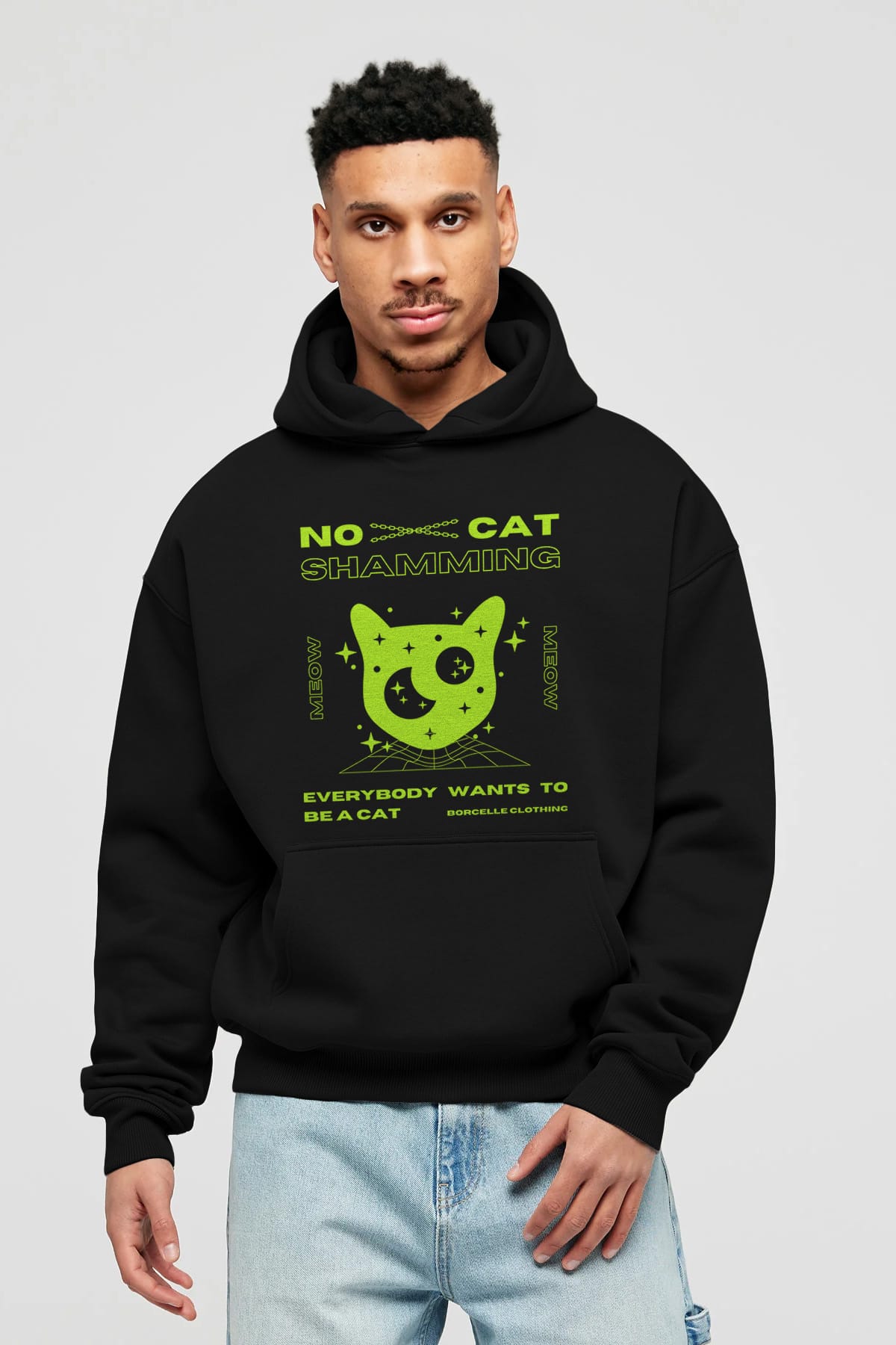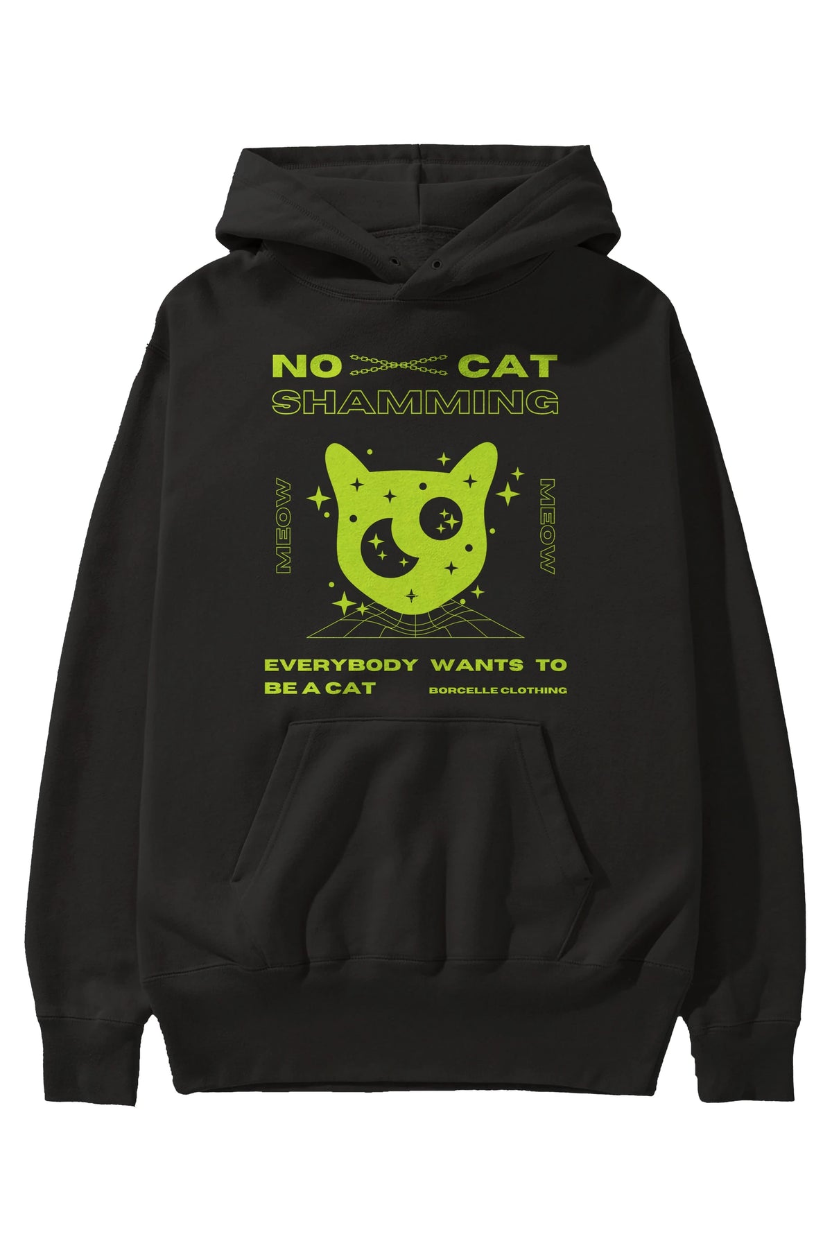 No Cat Shamming Yazılı Ön Baskılı Oversize Hoodie Kapüşonlu Sweatshirt Erkek Kadın Unisex