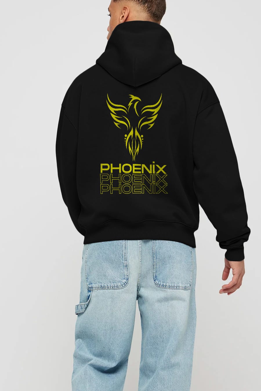 Phoenix Yazılı Arka Baskılı Oversize Hoodie Kapüşonlu Sweatshirt Erkek Kadın Unisex