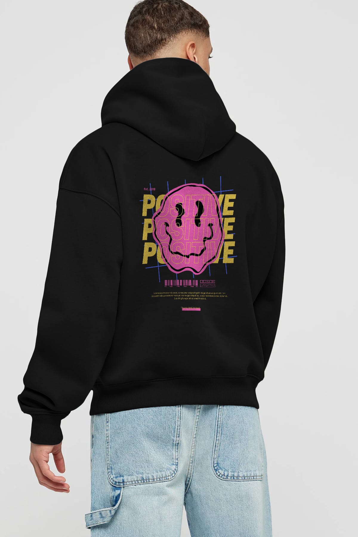 Positive 2 Arka Baskılı Oversize Hoodie Kapüşonlu Sweatshirt Erkek Kadın Unisex
