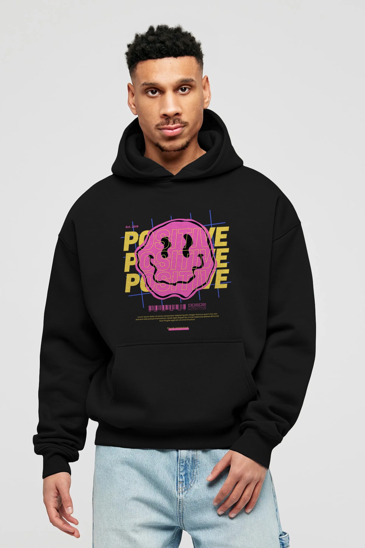 Positive 2 Ön Baskılı Oversize Hoodie Kapüşonlu Sweatshirt Erkek Kadın Unisex