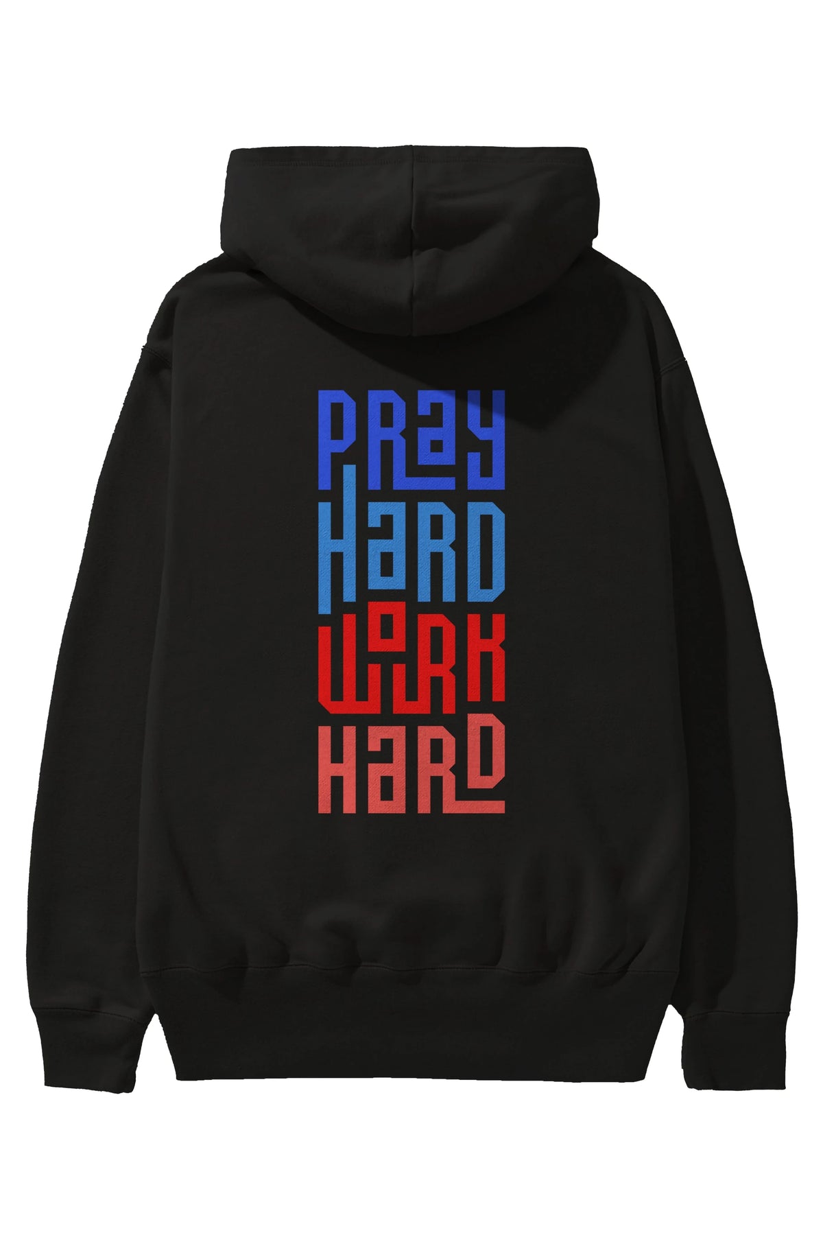 Pray Hard Work Hard Yazılı Arka Baskılı Oversize Hoodie Kapüşonlu Sweatshirt Erkek Kadın Unisex