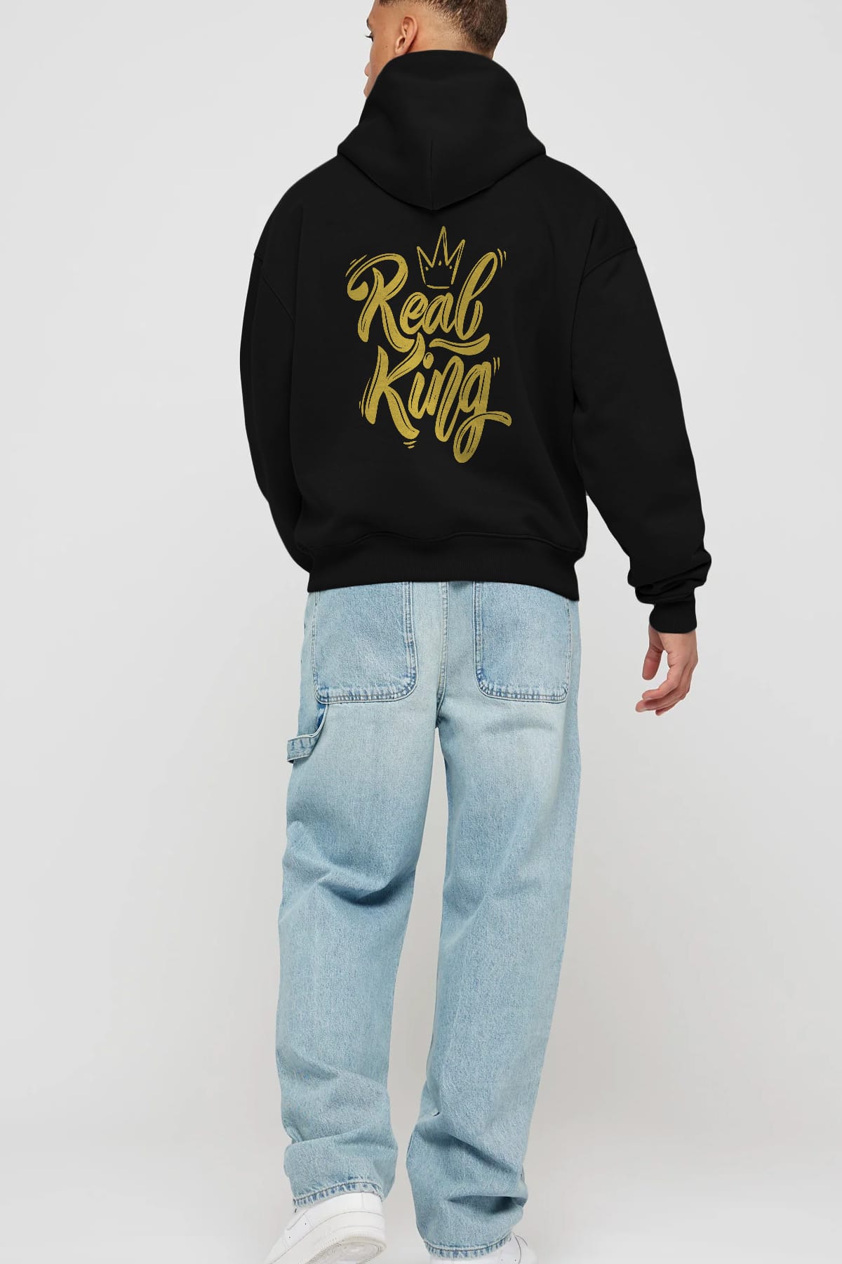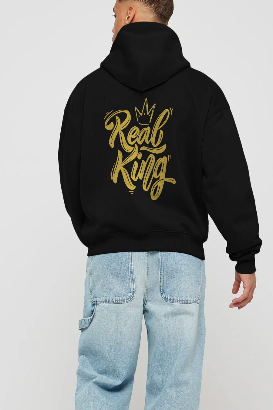 Real King Yazılı Arka Baskılı Oversize Hoodie Kapüşonlu Sweatshirt Erkek Kadın Unisex
