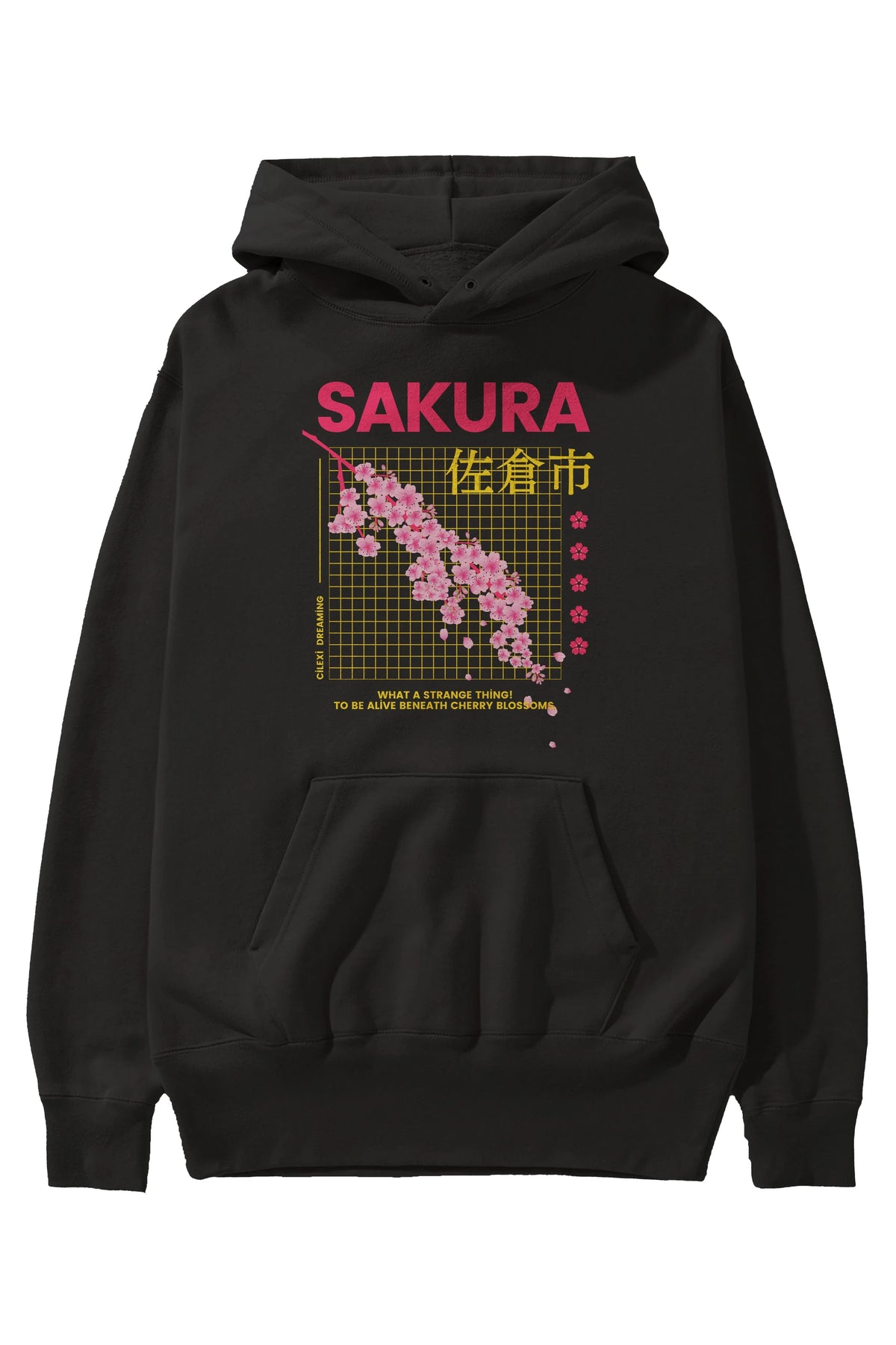 Sakura Streetwear Ön Baskılı Oversize Hoodie Kapüşonlu Sweatshirt Erkek Kadın Unisex