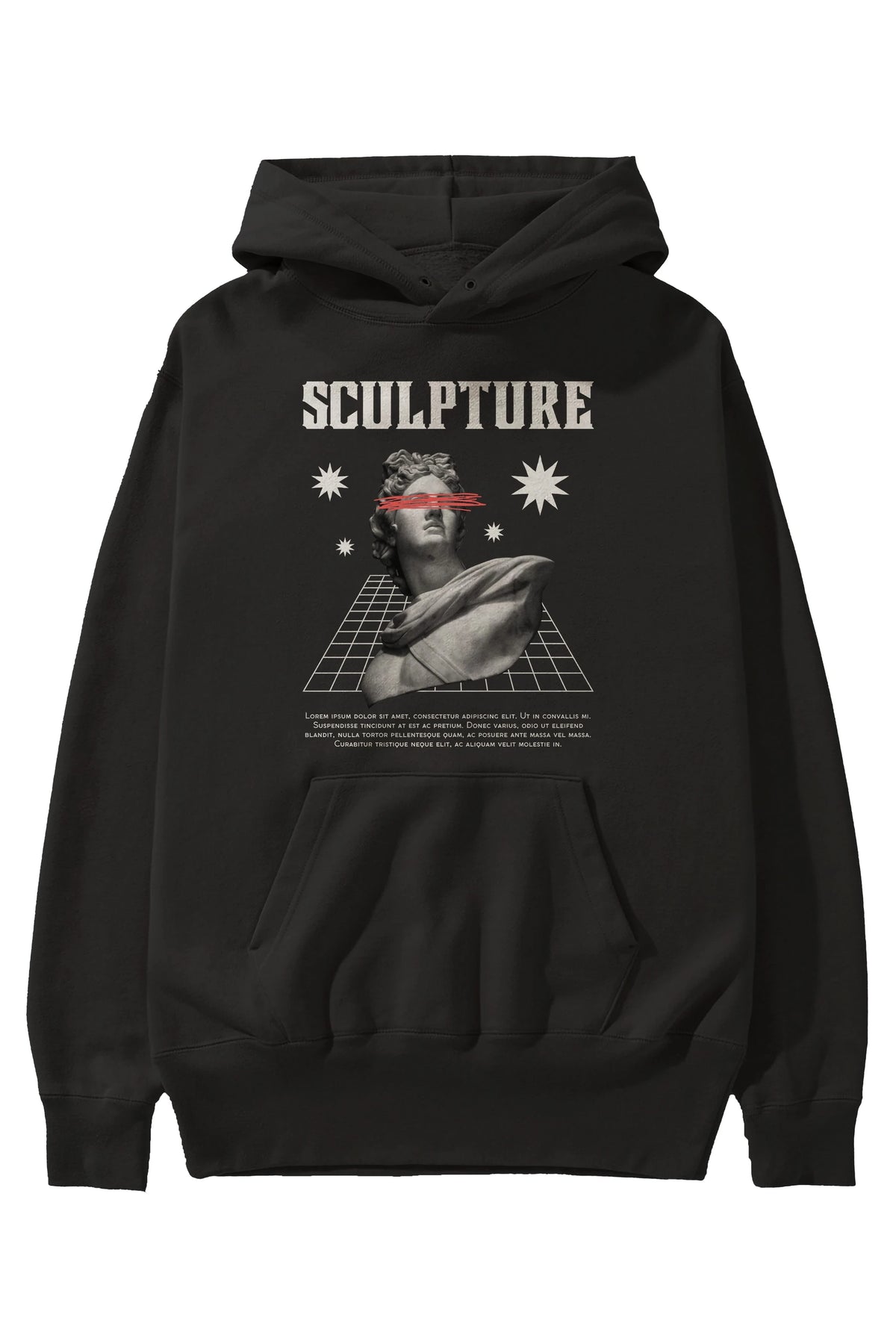 Sculpture Yazılı Ön Baskılı Oversize Hoodie Kapüşonlu Sweatshirt Erkek Kadın Unisex