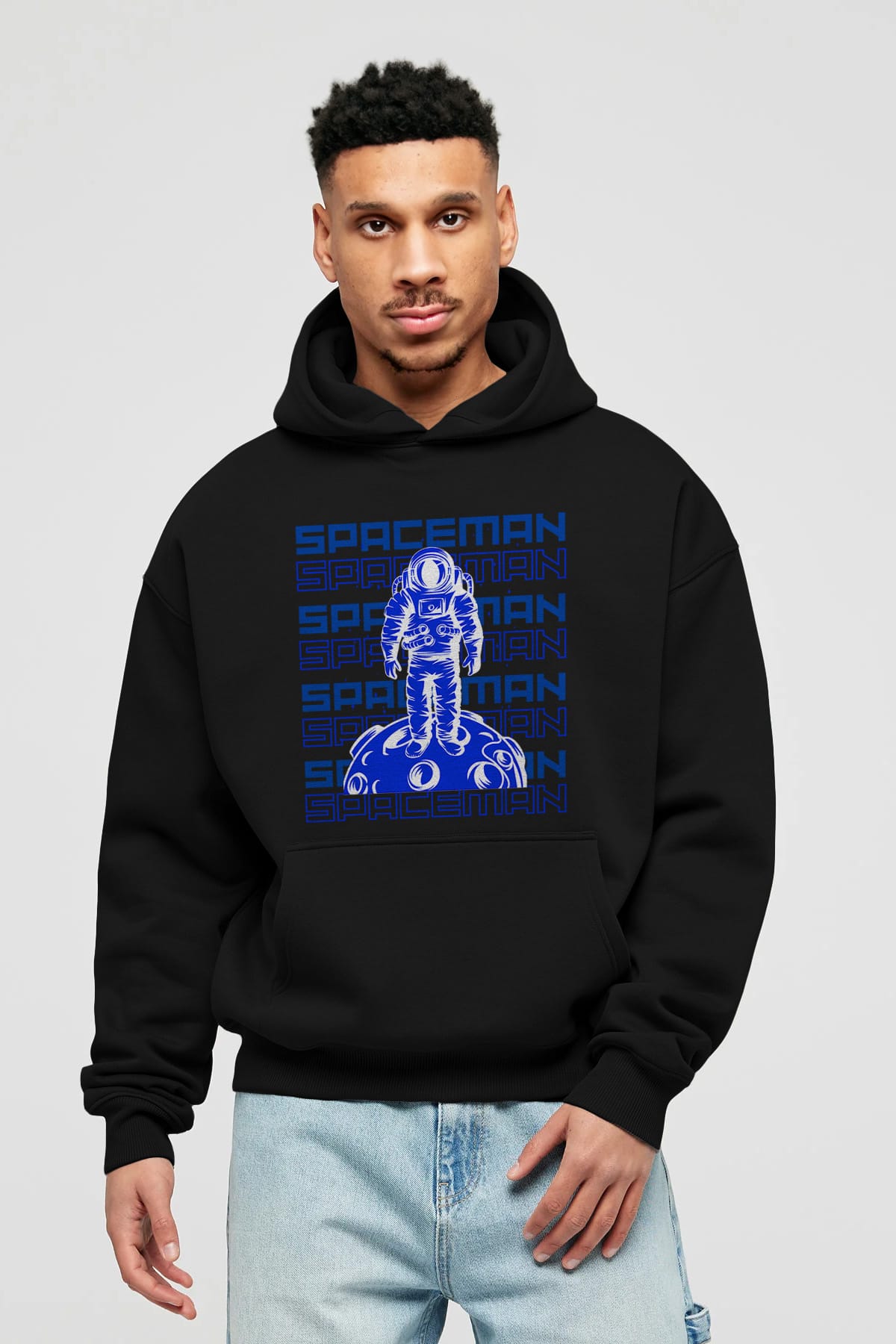 Spaceman Yazılı Ön Baskılı Oversize Hoodie Kapüşonlu Sweatshirt Erkek Kadın Unisex