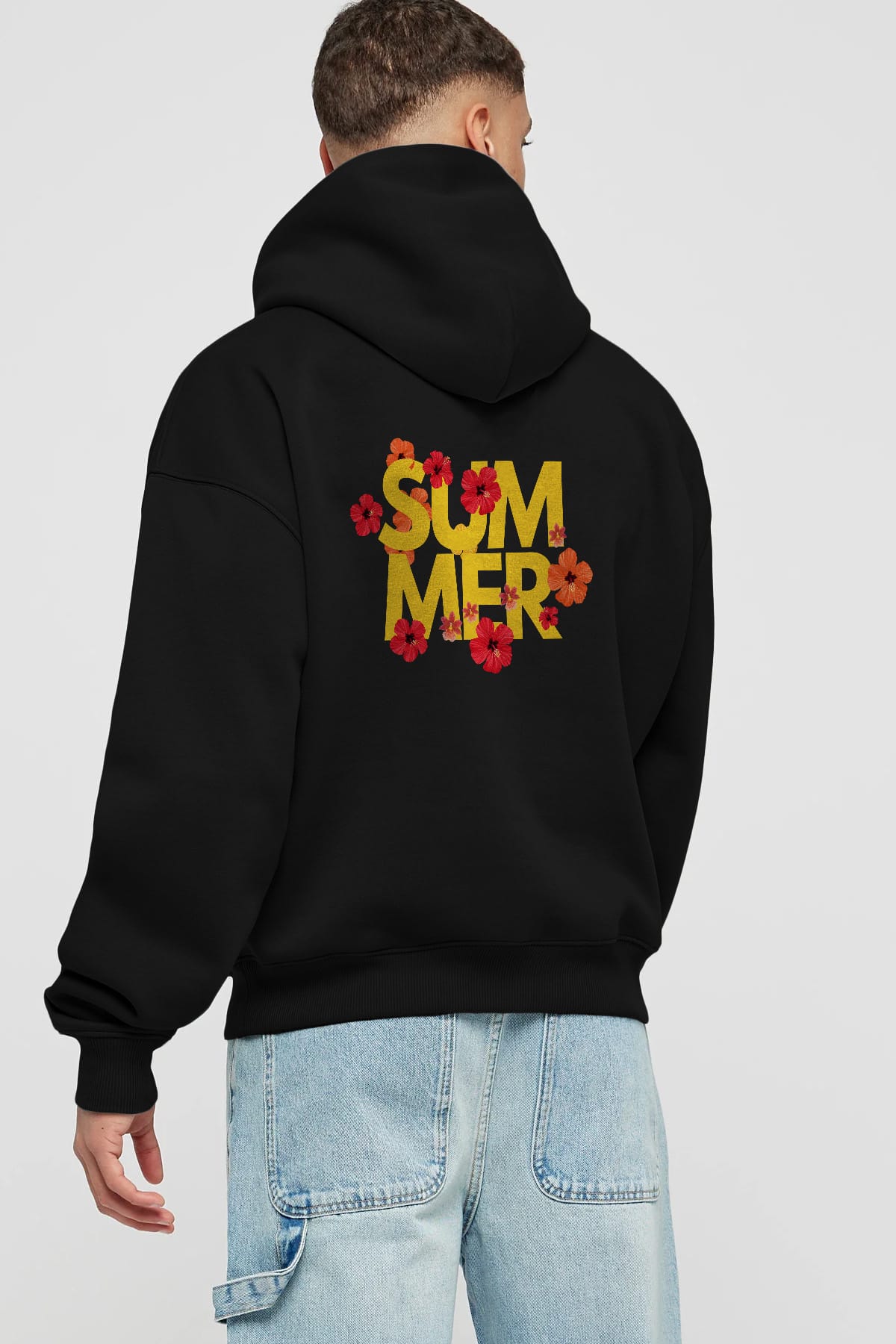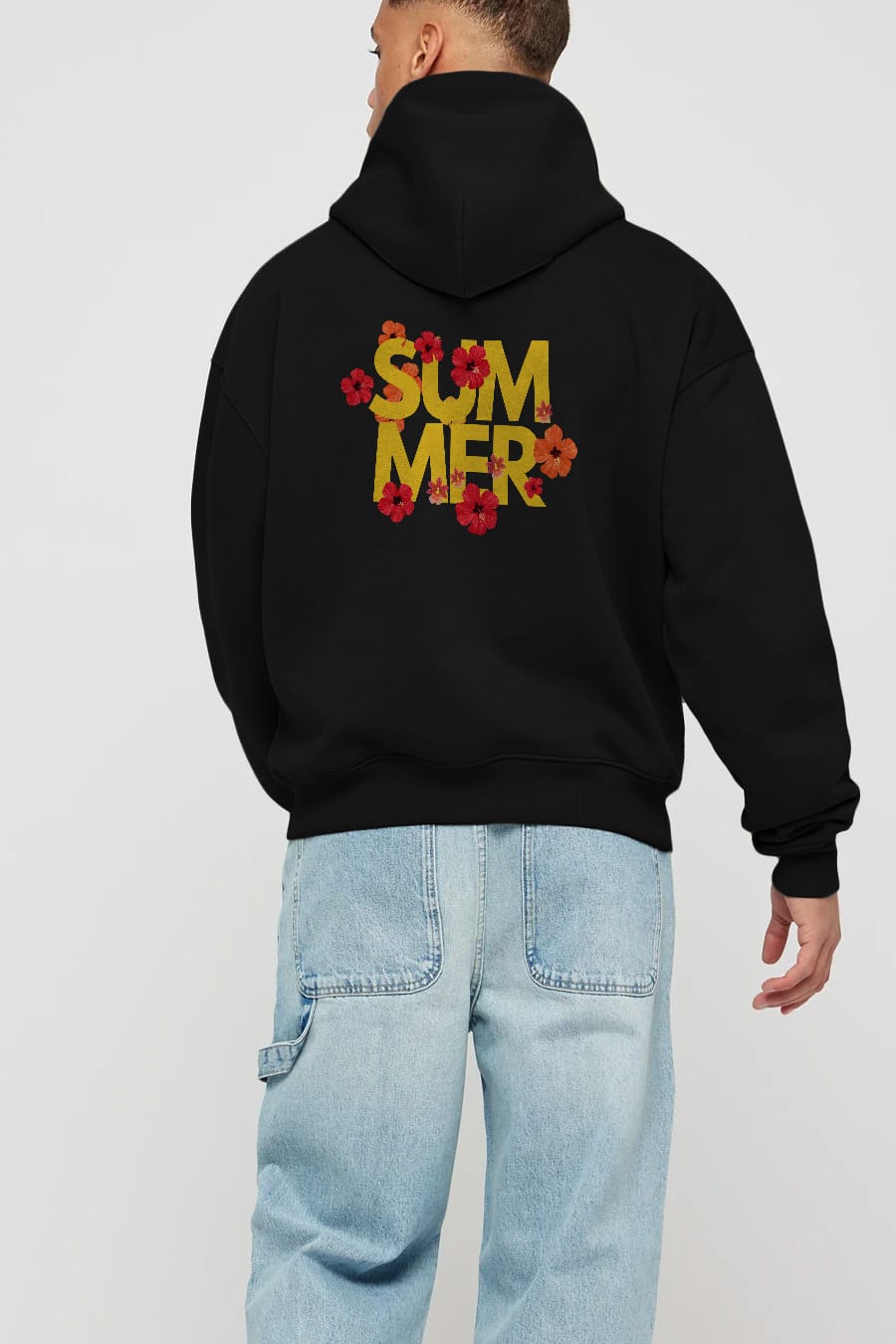 Summer Yazılı 2 Arka Baskılı Oversize Hoodie Kapüşonlu Sweatshirt Erkek Kadın Unisex
