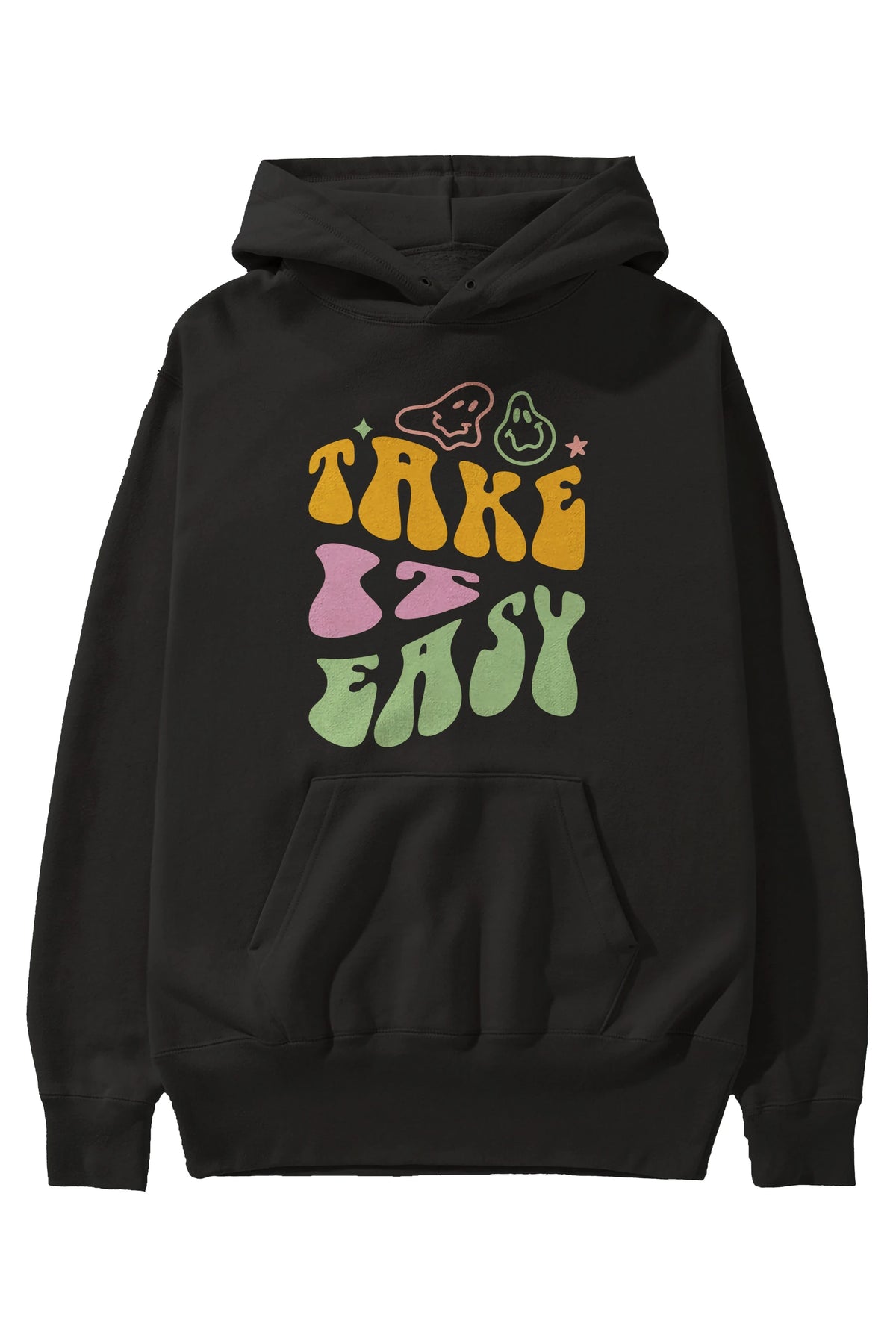 Take it Easy Yazılı Ön Baskılı Oversize Hoodie Kapüşonlu Sweatshirt Erkek Kadın Unisex