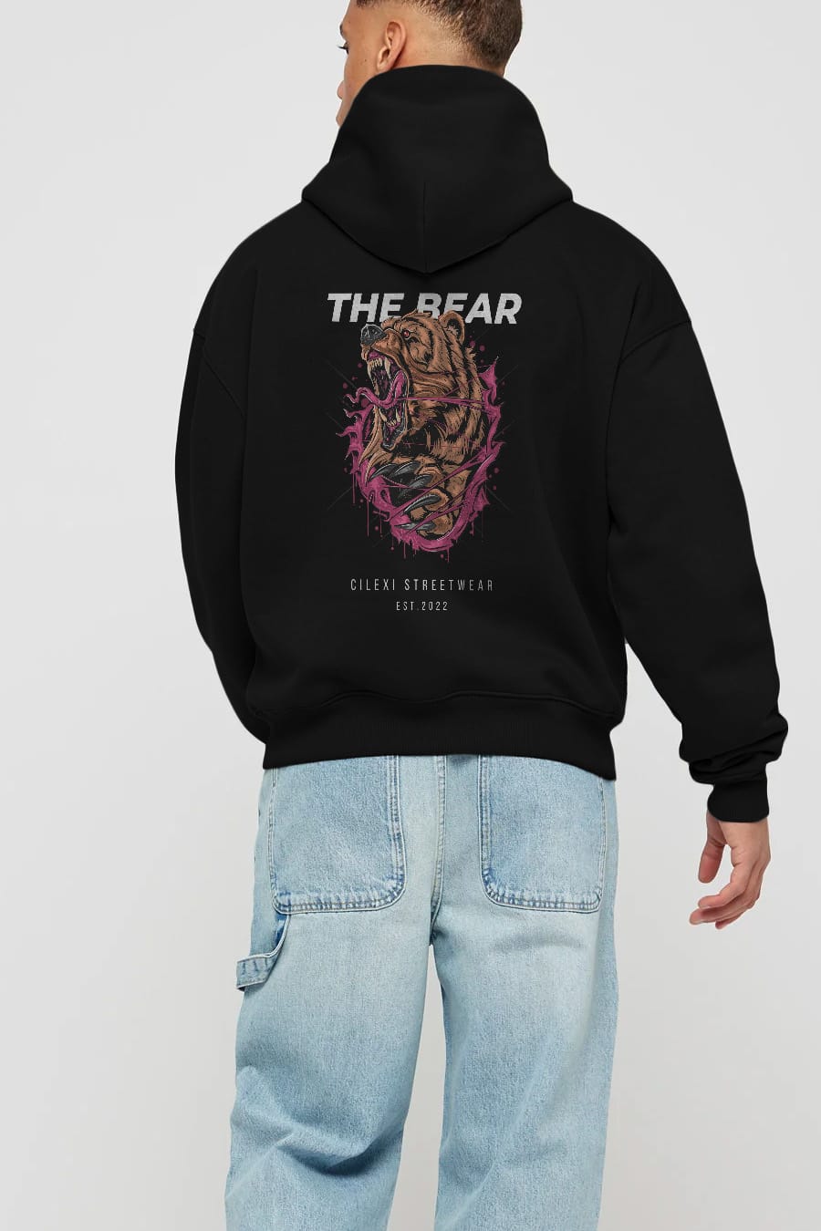 The Bear Arka Baskılı Oversize Hoodie Kapüşonlu Sweatshirt Erkek Kadın Unisex