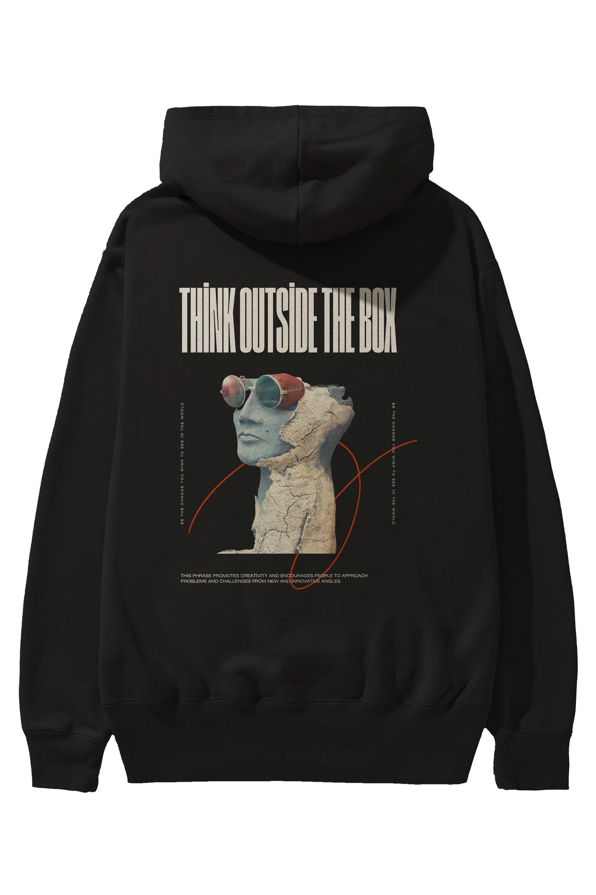 Think Outside The Box Arka Baskılı Oversize Hoodie Kapüşonlu Sweatshirt Erkek Kadın Unisex