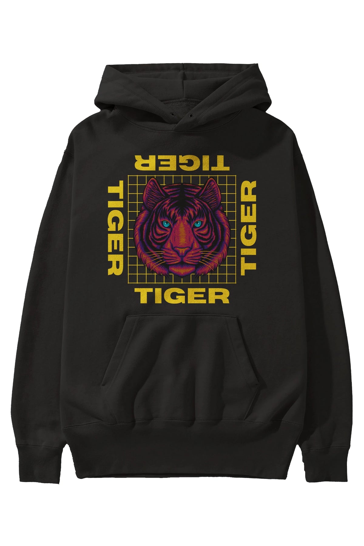 Tiger Yazılı Streetwear Ön Baskılı Oversize Hoodie Kapüşonlu Sweatshirt Erkek Kadın Unisex