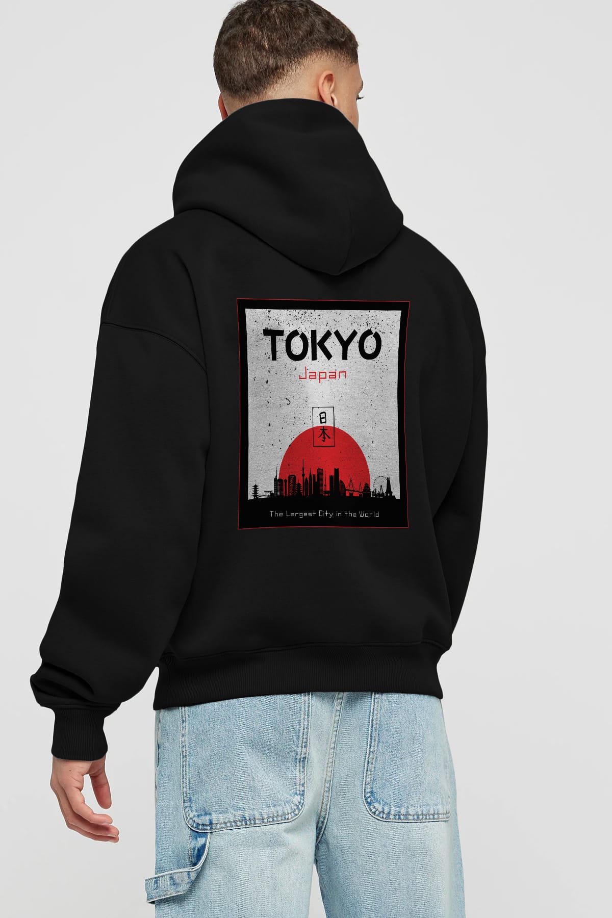 Tokyo Japan Yazılı Arka Baskılı Oversize Hoodie Kapüşonlu Sweatshirt Erkek Kadın Unisex