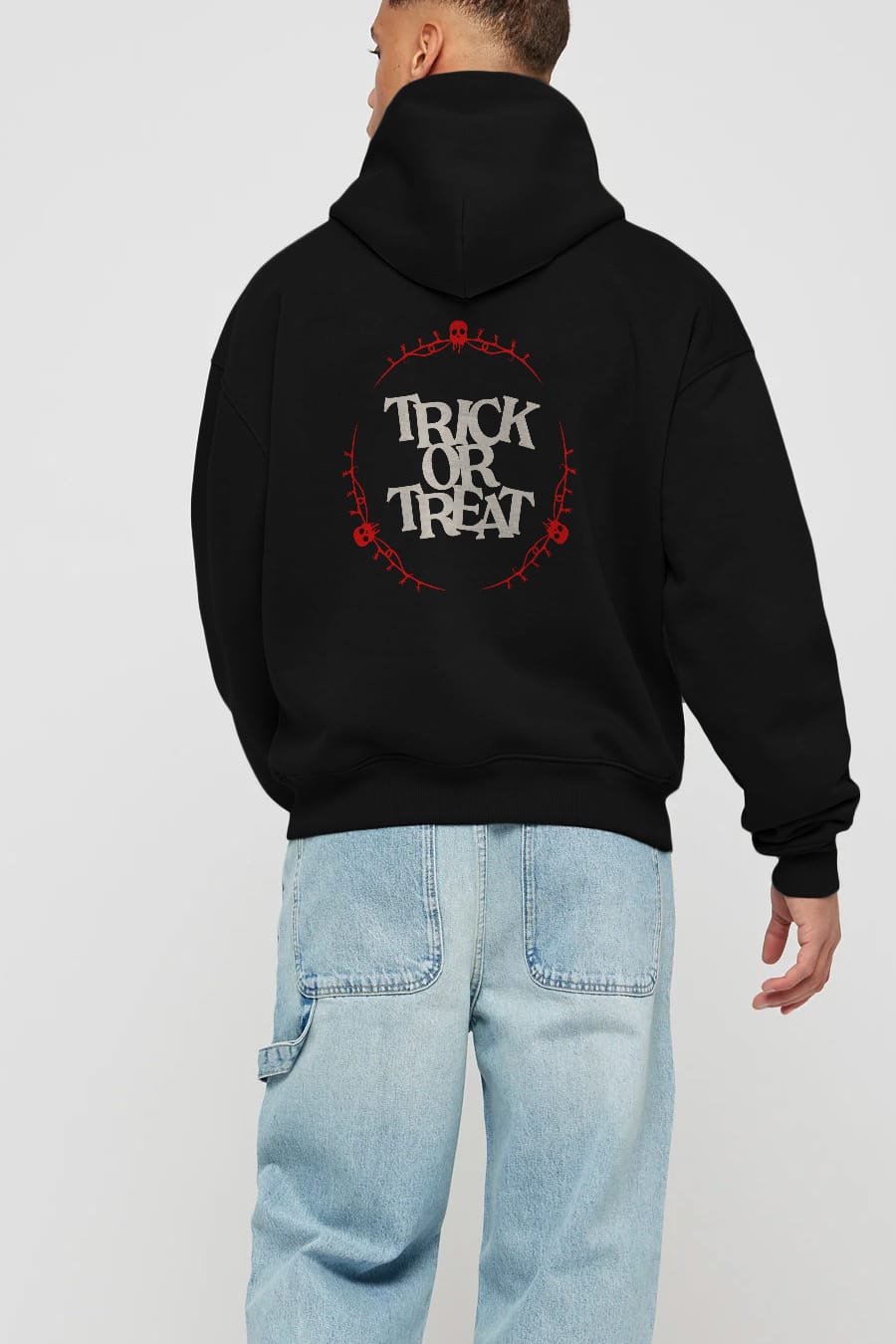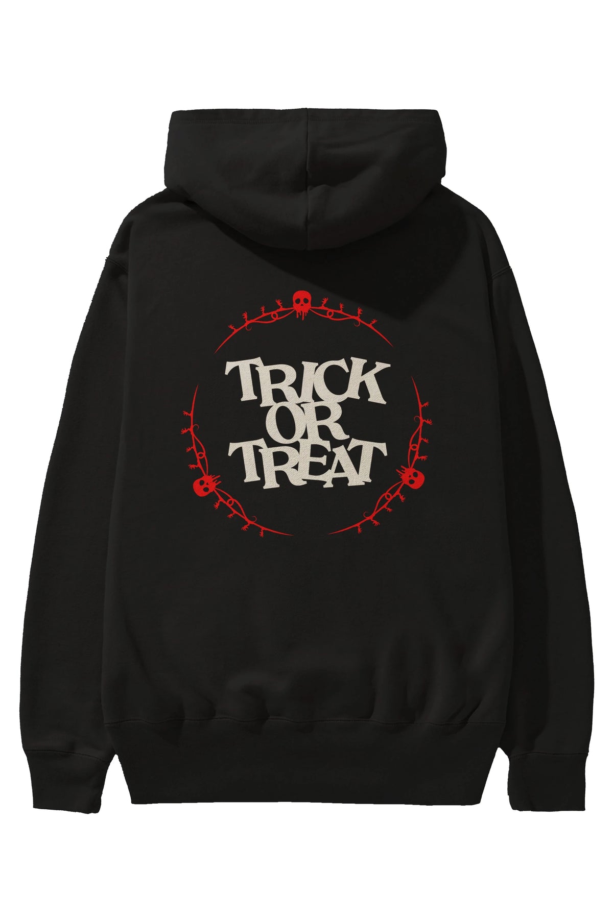 Trick or Treat Yazılı Arka Baskılı Oversize Hoodie Kapüşonlu Sweatshirt Erkek Kadın Unisex