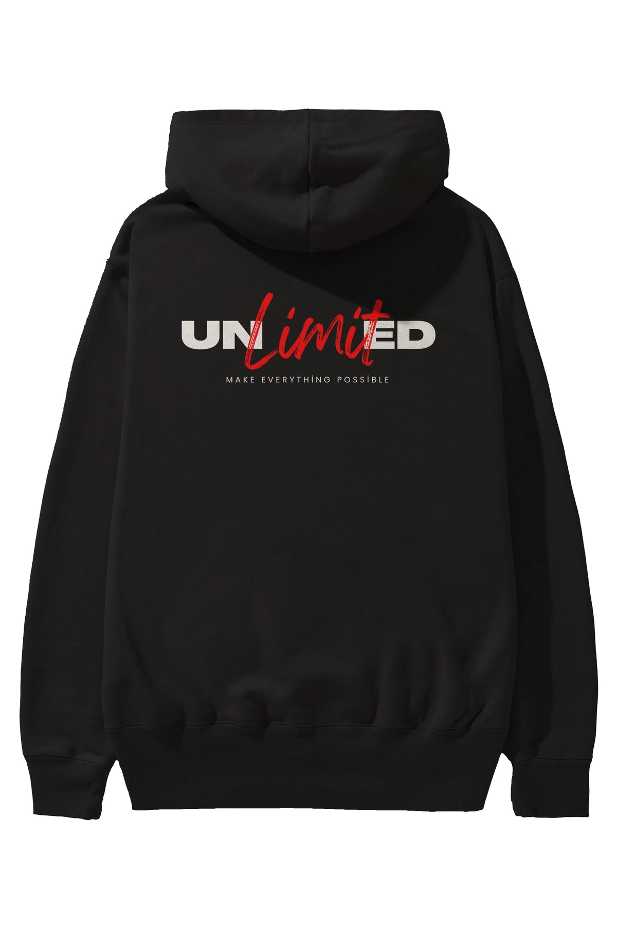 Unlimited Yazılı Arka Baskılı Oversize Hoodie Kapüşonlu Sweatshirt Erkek Kadın Unisex