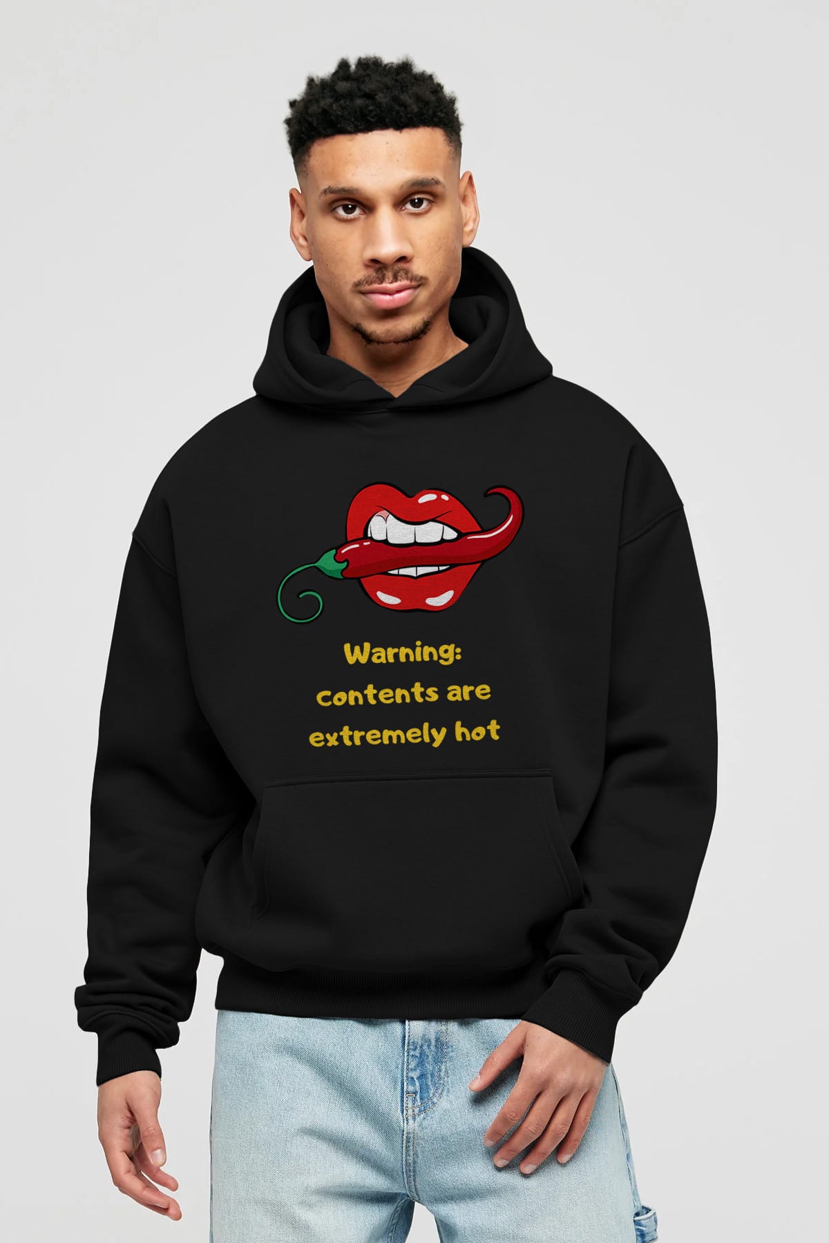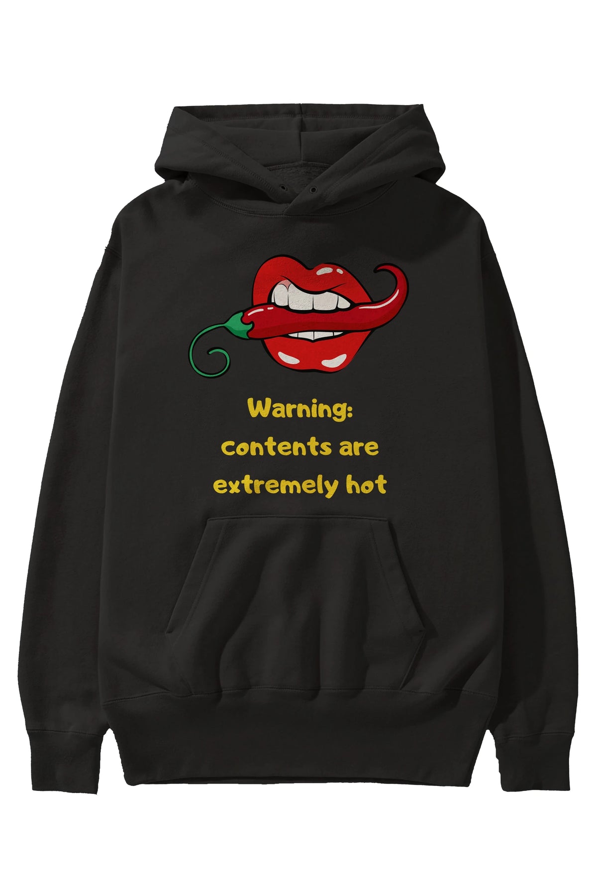 Warning Contents Yazılı Ön Baskılı Oversize Hoodie Kapüşonlu Sweatshirt Erkek Kadın Unisex