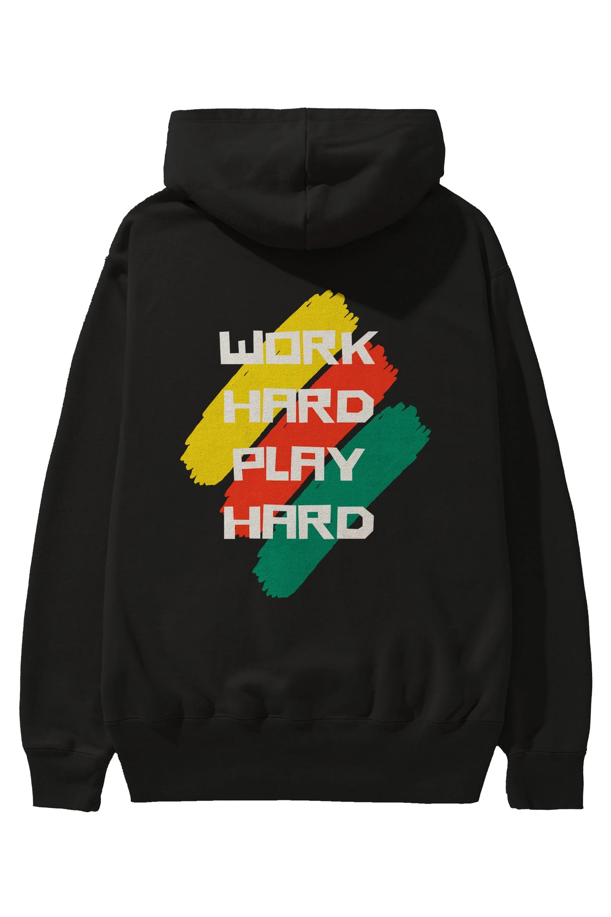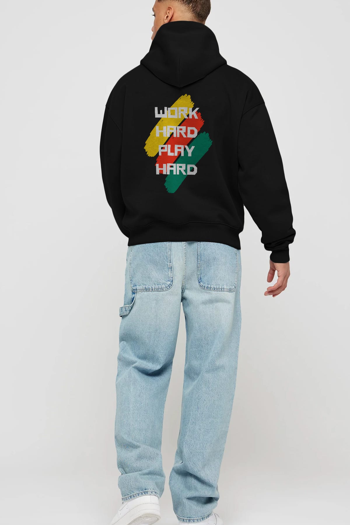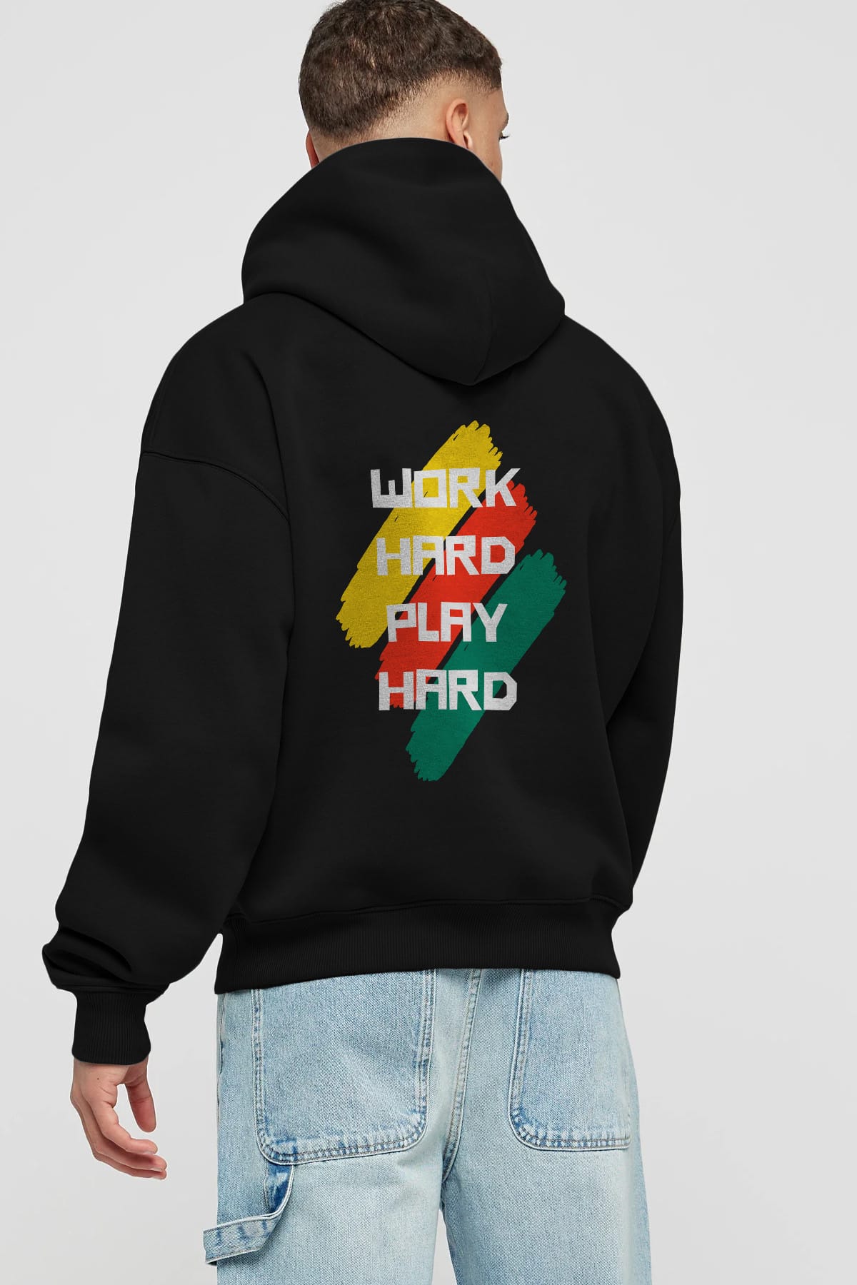 Work Hard Play Hard 2 Arka Baskılı Oversize Hoodie Kapüşonlu Sweatshirt Erkek Kadın Unisex
