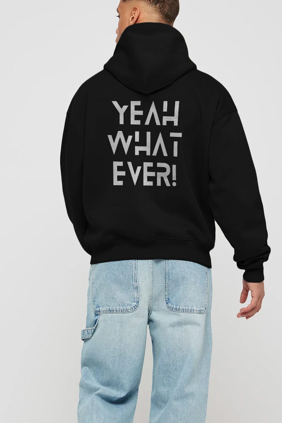 Yeah What Ever Yazılı Arka Baskılı Oversize Hoodie Kapüşonlu Sweatshirt Erkek Kadın Unisex