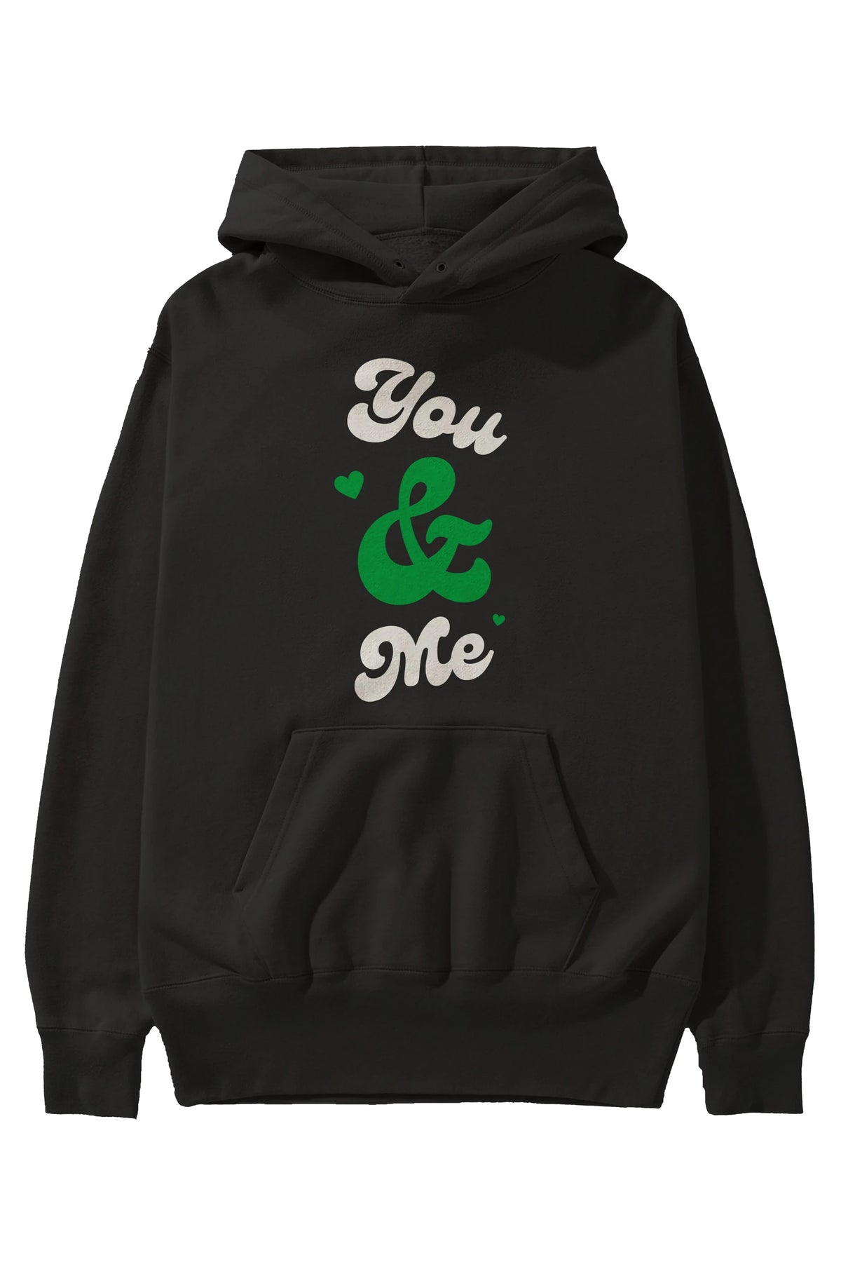 You and Me Yazılı Ön Baskılı Oversize Hoodie Kapüşonlu Sweatshirt Erkek Kadın Unisex