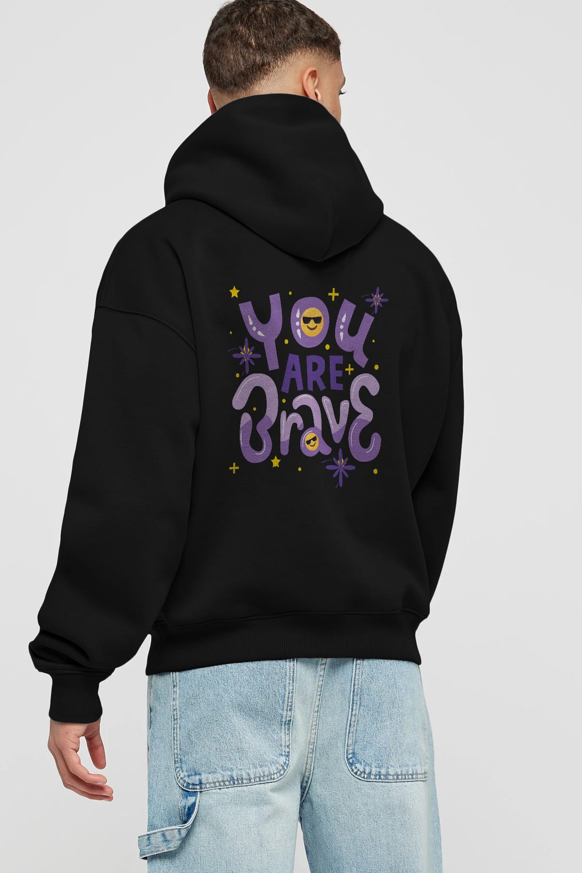 You Are Brave Yazılı Arka Baskılı Oversize Hoodie Kapüşonlu Sweatshirt Erkek Kadın Unisex