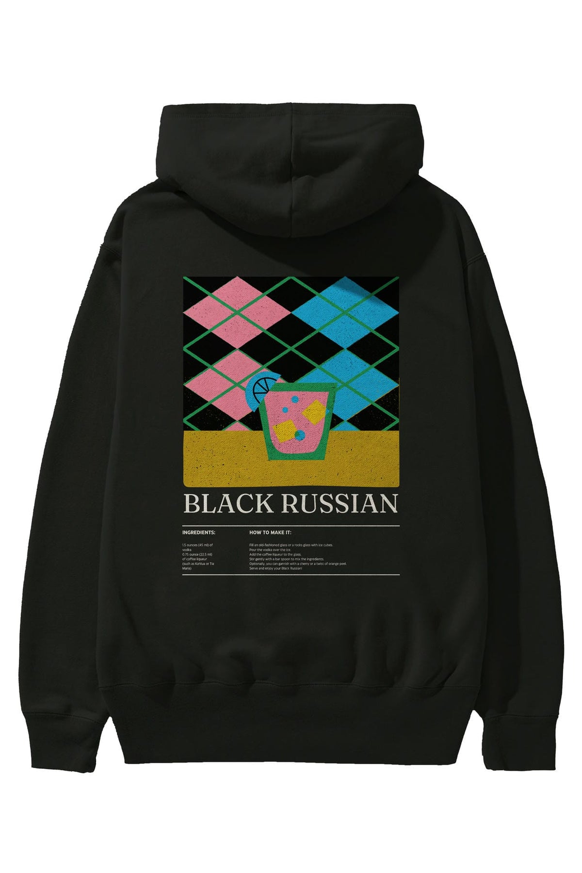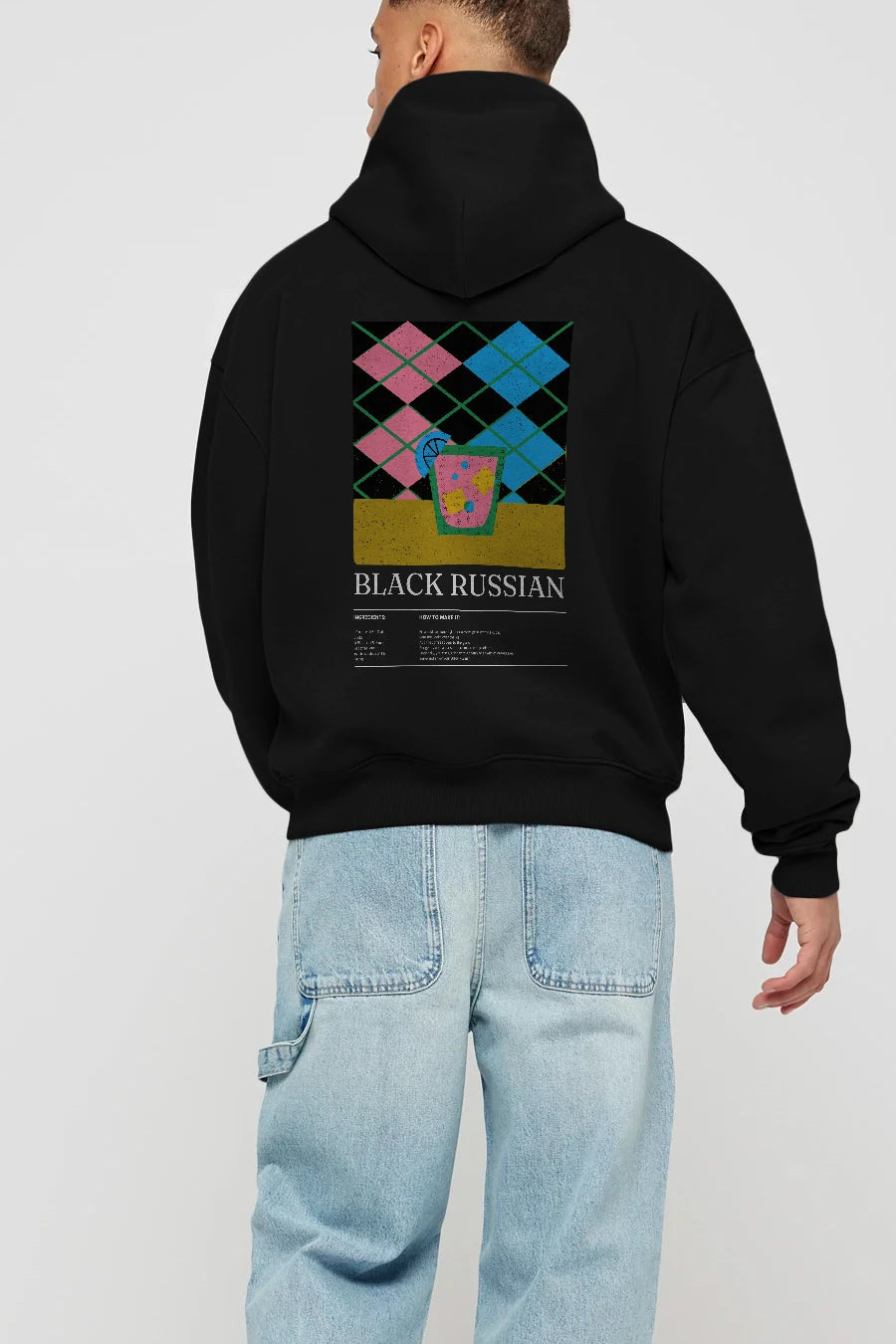 Black Russian Kokteyl Arka Baskılı Hoodie Oversize Kapüşonlu Sweatshirt Erkek Kadın